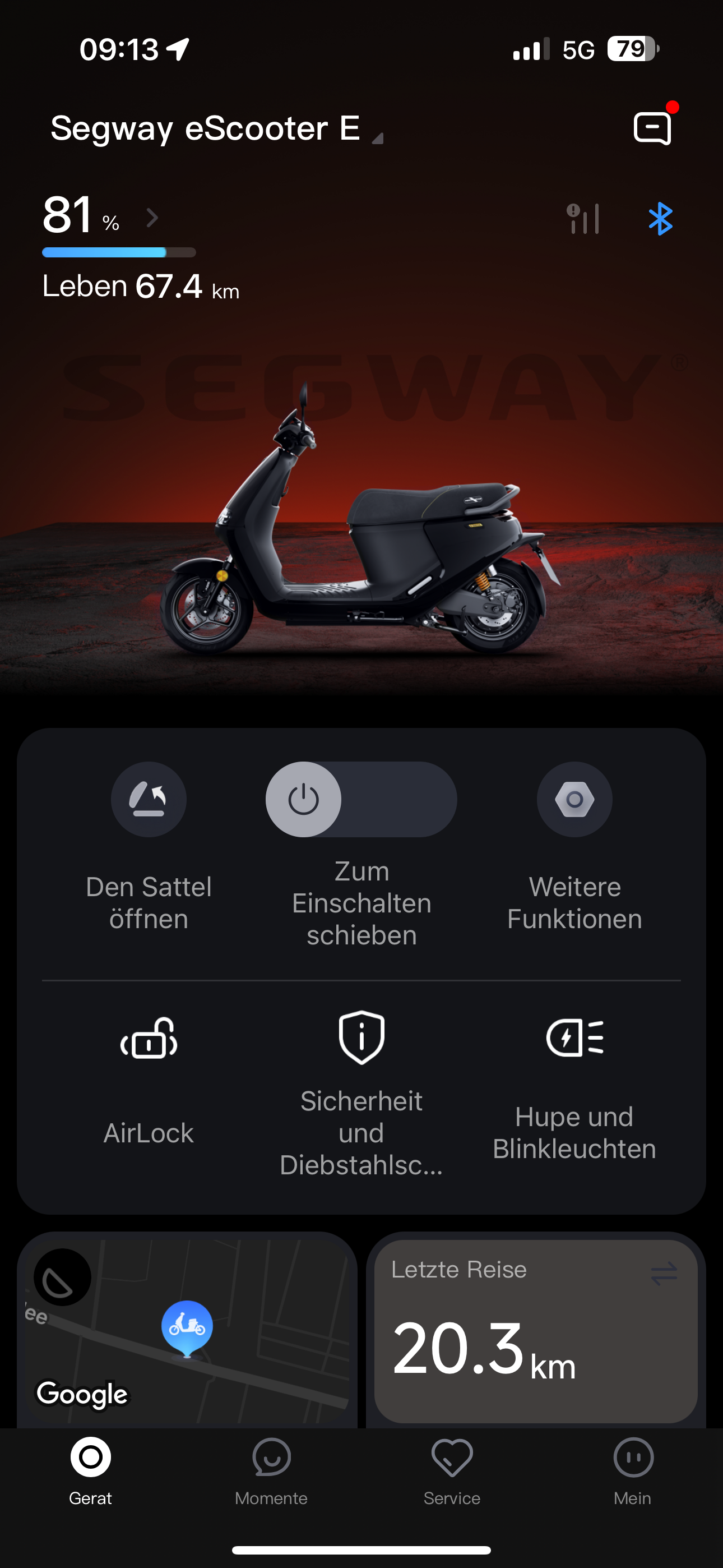 - Die App gelöscht und neu installiert und den Roller mit der App neu gekoppelt.