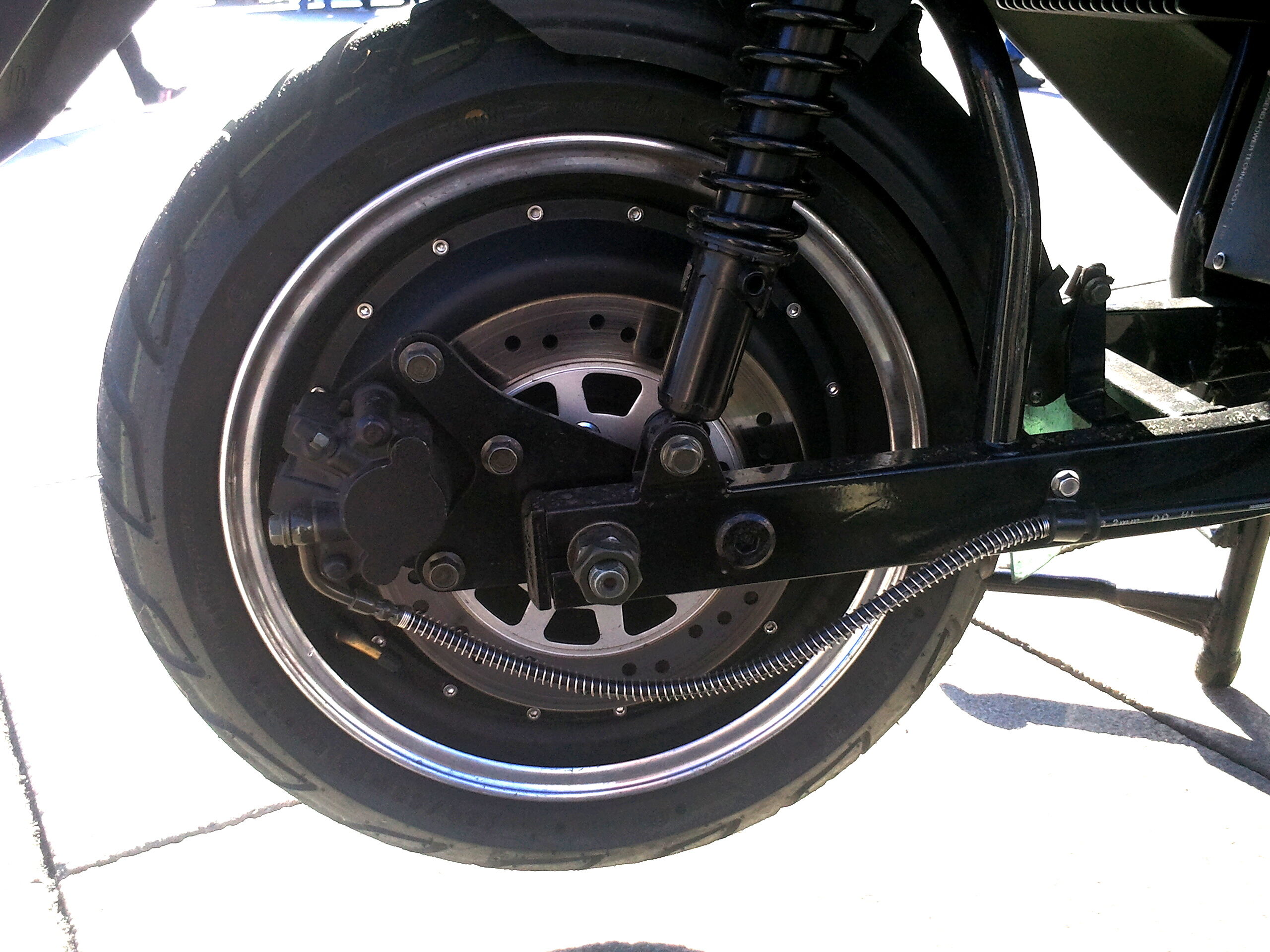 Ja, schöner Bericht, schöne Bilder. Die Montage des hinteren Bremssattels inklusive Halter halte ich für eine mittlere Katastrophe. Der Bremsattel gehört auf die Seite vor dem Stoßdämpfer - sind dann kleinere ungefederte Massen. Ein Roller mit einer Leistung von 8 kW sollte vorn und hinten größere Bremsscheiben haben. Na, vielleicht hat er ja Reku. Interessant wäre, wie das Reaktionsmoment der Motorachse abgefangen wird, da die Kollegen mit den 5kW Motoren ja schon Schwierigkeiten hatten. Wenn ich von einer normalen, abgeflachten Motorachse ausgehe, hat eine Kontermutter da nichts zu suchen. Angebracht wäre Loctite oder eine selbstsichernde Mutter.