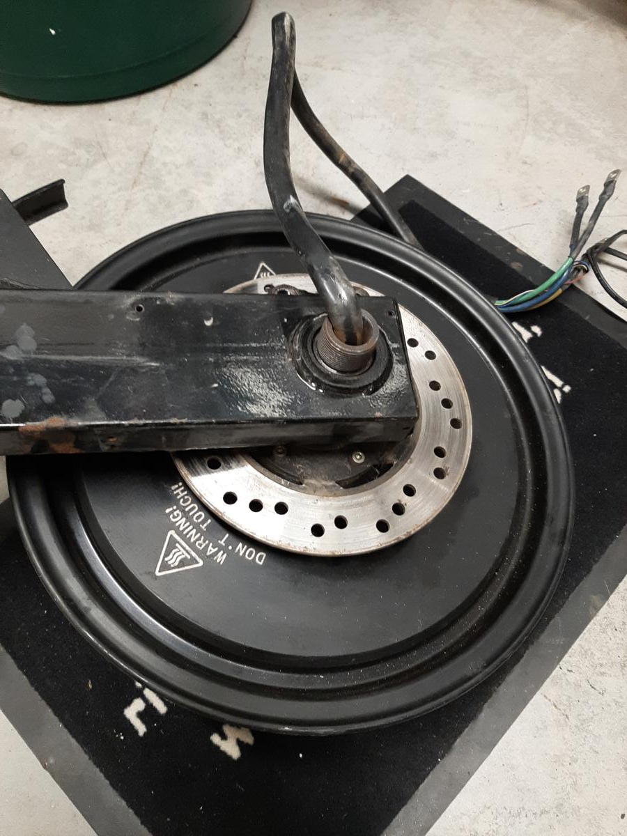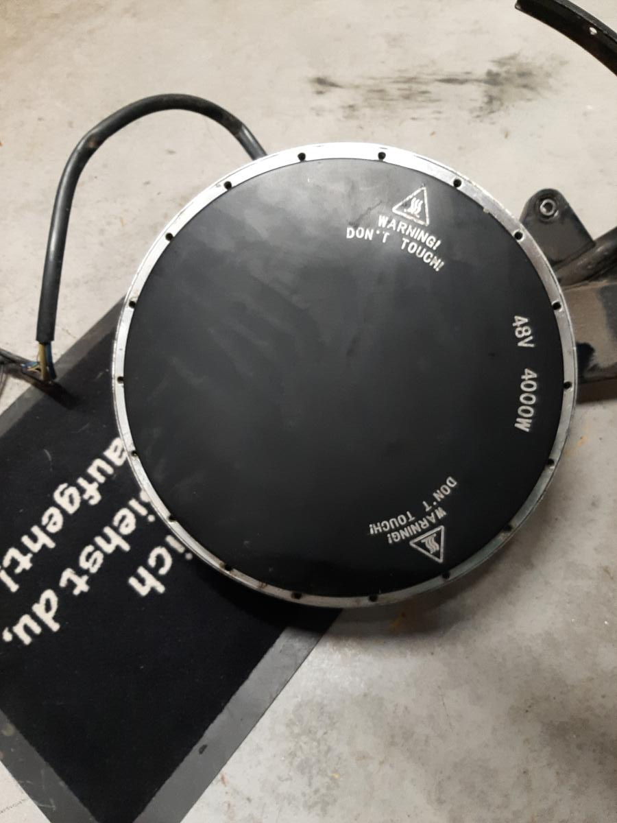 Das gilt für jeden Radnabenmotor : Der Motor wird mit Kabel und Reifen ausgebaut . Dazu müssen zuerst die Kabeln beim Controller gelöst werden . Meist 3 Dicke ( Leistungsteil geschraubt ) und die Steuerung , meist gesteckt . Dann kann man den Motor von der Schwinge nehmen . Du hast wahrscheinlich den Motor zerlegt .