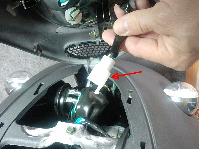Sei vorsichtig, aber auch bestimmt, denn es ist halt alles Plastik. Und schön vorsichtig, denn es hängt noch die Verkabelung der beiden Blinker und des Frontscheinwerfers dran, diese lösen ! Jetzt kannst du das gesamte Frontscheinwerfer-Teil entfernen oder du hast halt vorher schon deine Lampe/n gewechselt und nicht alles abgebaut. Evtl. kommst du jetzt auch schon an das Lenkkopflager oder was sonst.