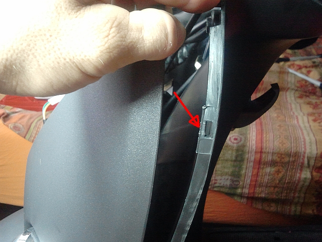Diese Schraube lösen und jeweils rechts und links, oben und unten folgende, insgesamt jetzt noch 8 Schrauben lösen Jetzt kann die gesamte vordere Verkleidung ausgeklipt werden...