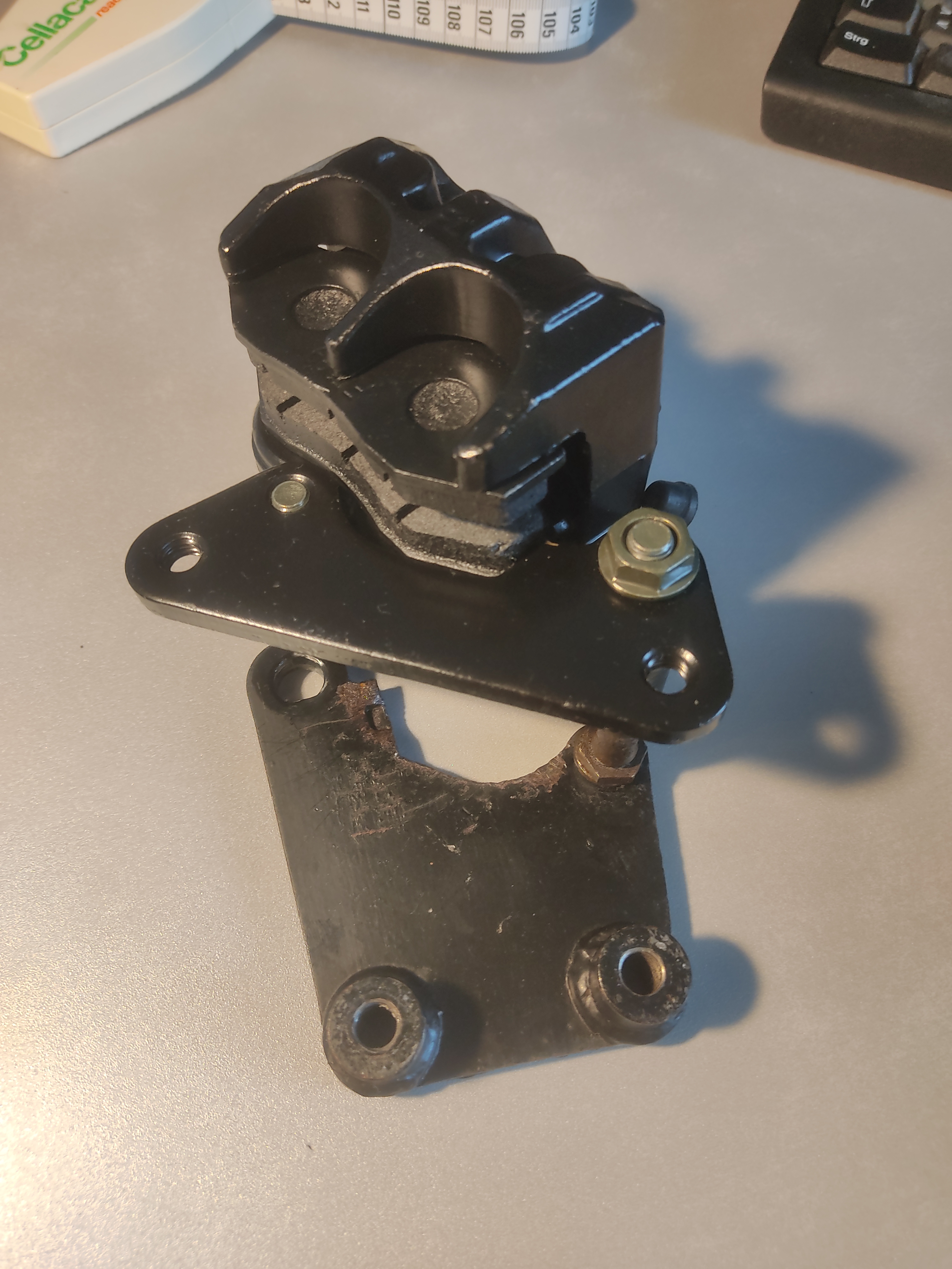 Hab das Halteblech gewechselt und den dortigen Gleitstift auf das alte Halteblech gewechselt. Der Sattel ist jetzt montiert und schwimmt wie ein Olympiaathlet.