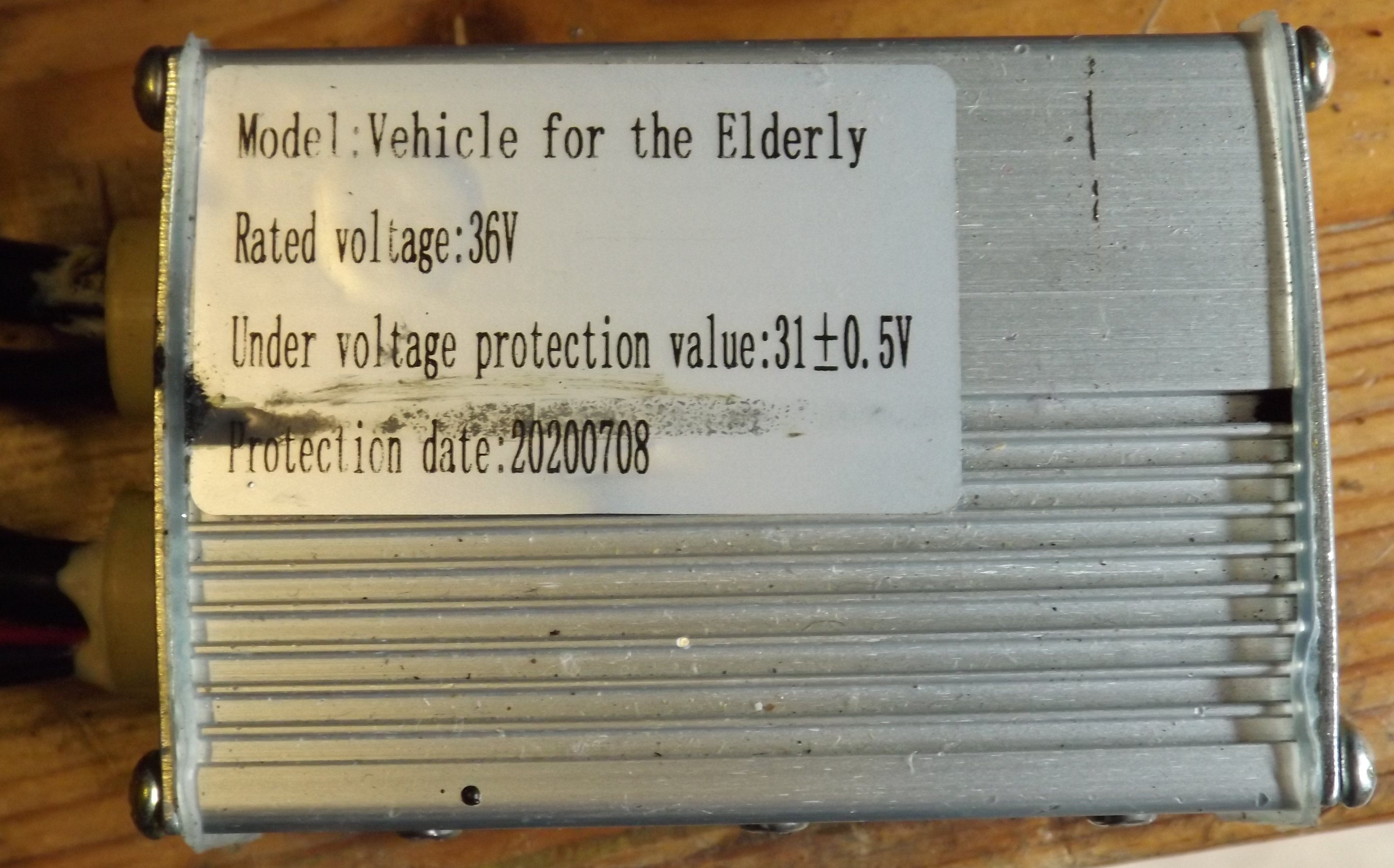 Die Angabe "Elderly" läßt eine wesentliche Eigenschaft erkennen: Das Ding hat eine Geschwindigkeitsbegrenzung. Das wiederum ist trickreich beim Einbau eines Controllers eines Pedelec, weil der für GROSSE Räder ist (28 Zoll?), der Scooter aber nur 10 Zoll hat. Der Controller eines Pedelec würde gehen, aufgrund des kleinen Raddurchmessers käme man auf rund 1/3 der maximalen Geschwindigkeit. Wenn die rund 20 km/h wäre, wäre es vielleicht 7 km/h.