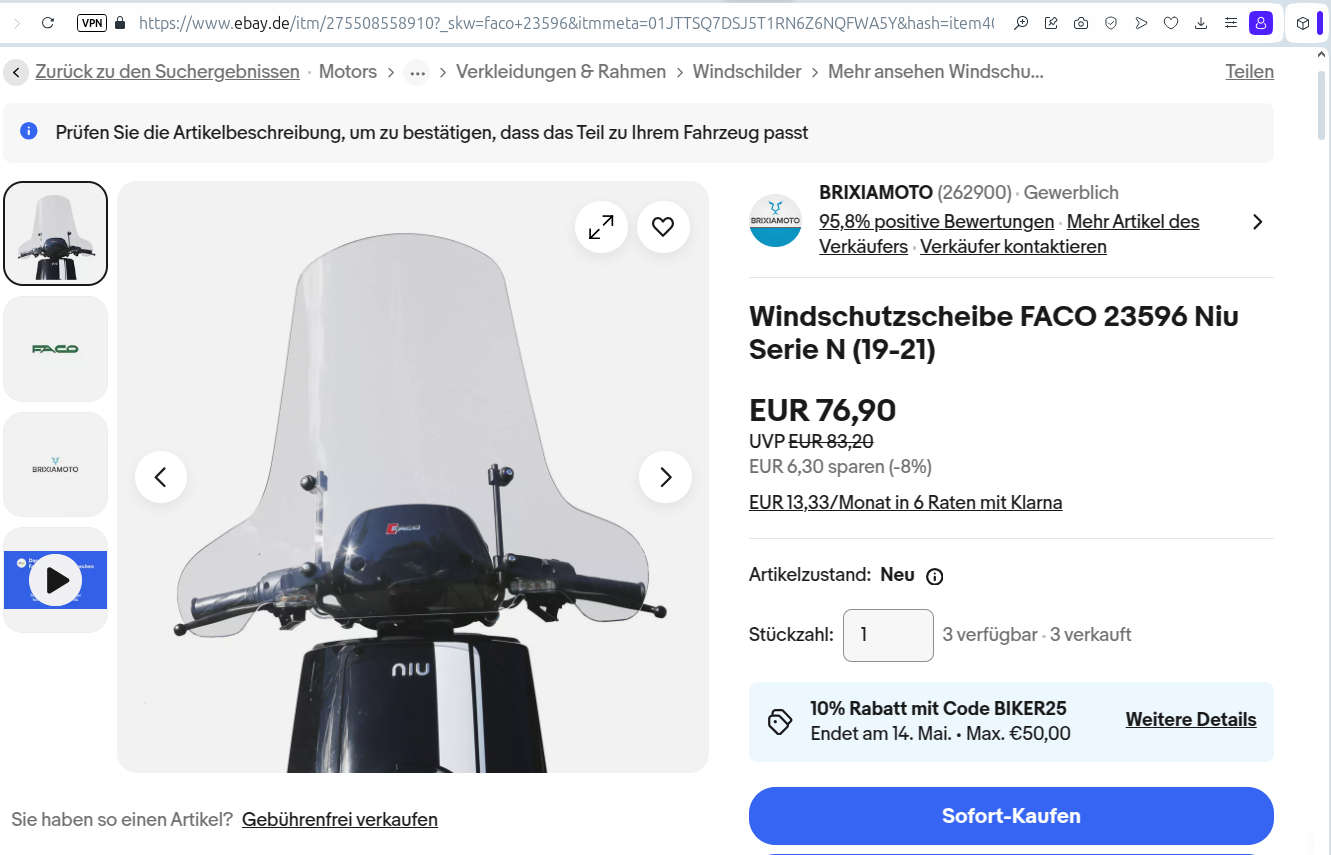 Zum Windschild für meinen N-GT... Ich habe mir dieses vom Hersteller FACO letztes Jahr gekauft: