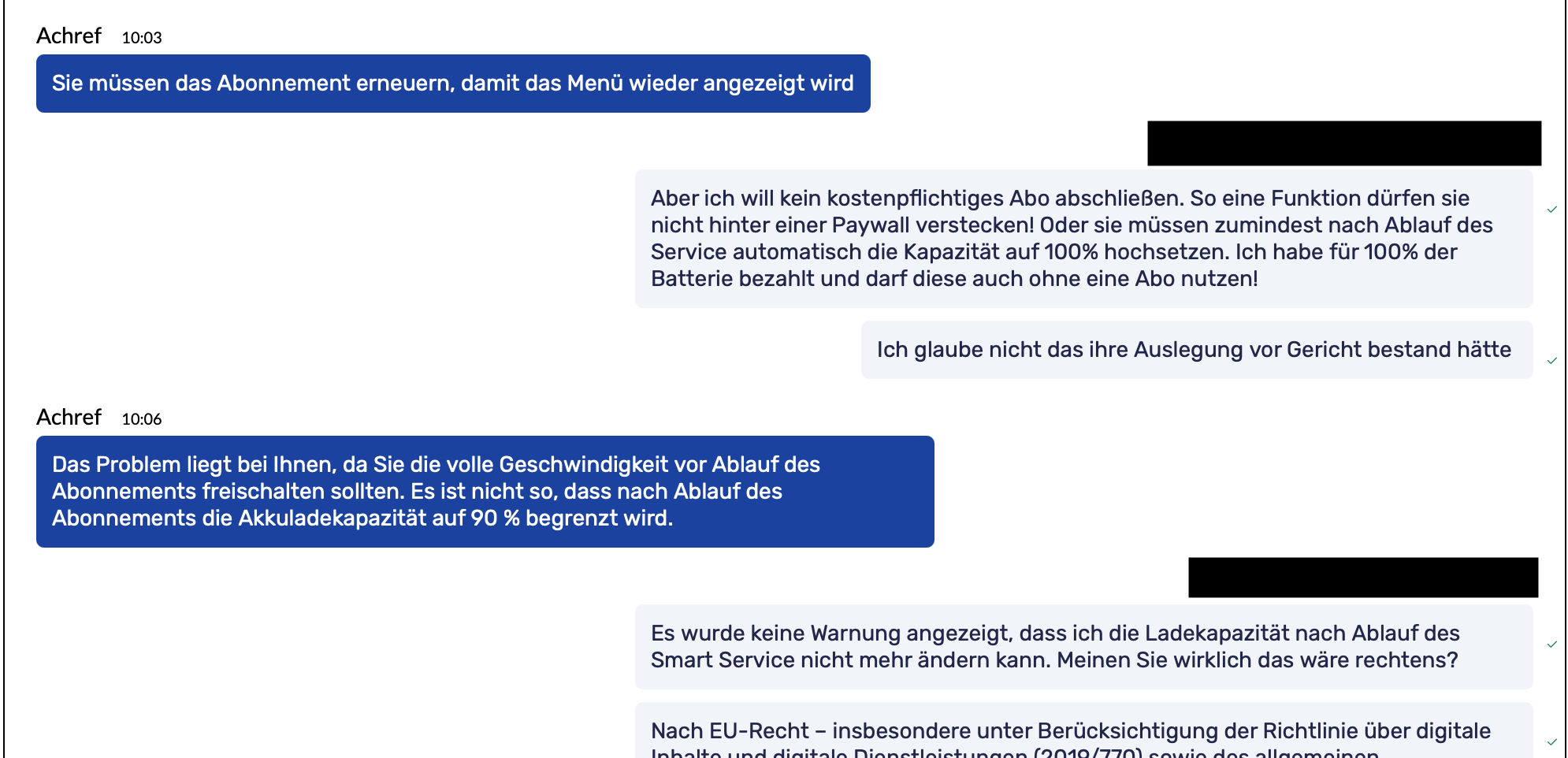 ich hatte den Beitrag bei Facebook geschrieben und mir wurde jetzt bereits mehrfach vom Kundendienst mitgeteilt, dass das so sei. Hat jemand eine rechtliche Einschätzung dazu? Ich kann mir kaum vorstellen, dass so ein Vorgehen legal ist.