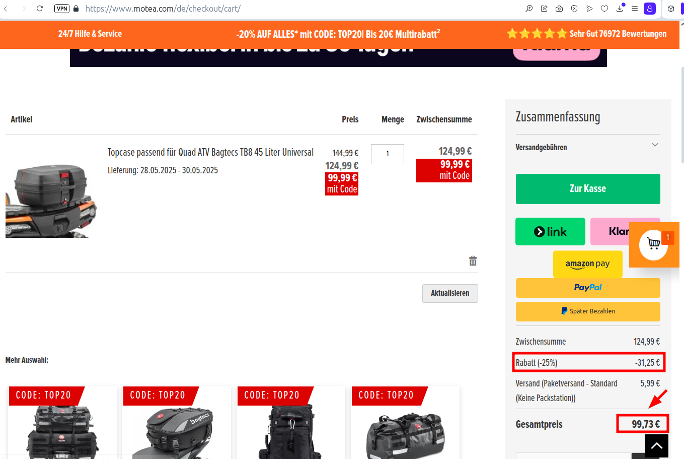 Ja, die "rabatte" bei Motea sind zeitlich begrenzt, und ich habe schon alles zwischen 20 und 40 Prozent gesehen - mehrfach. Wenn Du also ein bißchen wartest, solltest Du auch wieder die 40% kriegen...