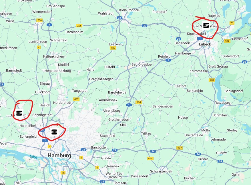 Leider geben die beiden linken in der Kartenansicht unten (Seat Hamburg und Reimers Pinneberg) auf telefonische Nachfrage an, das sie keinen Service mehr anbieten. :oops: