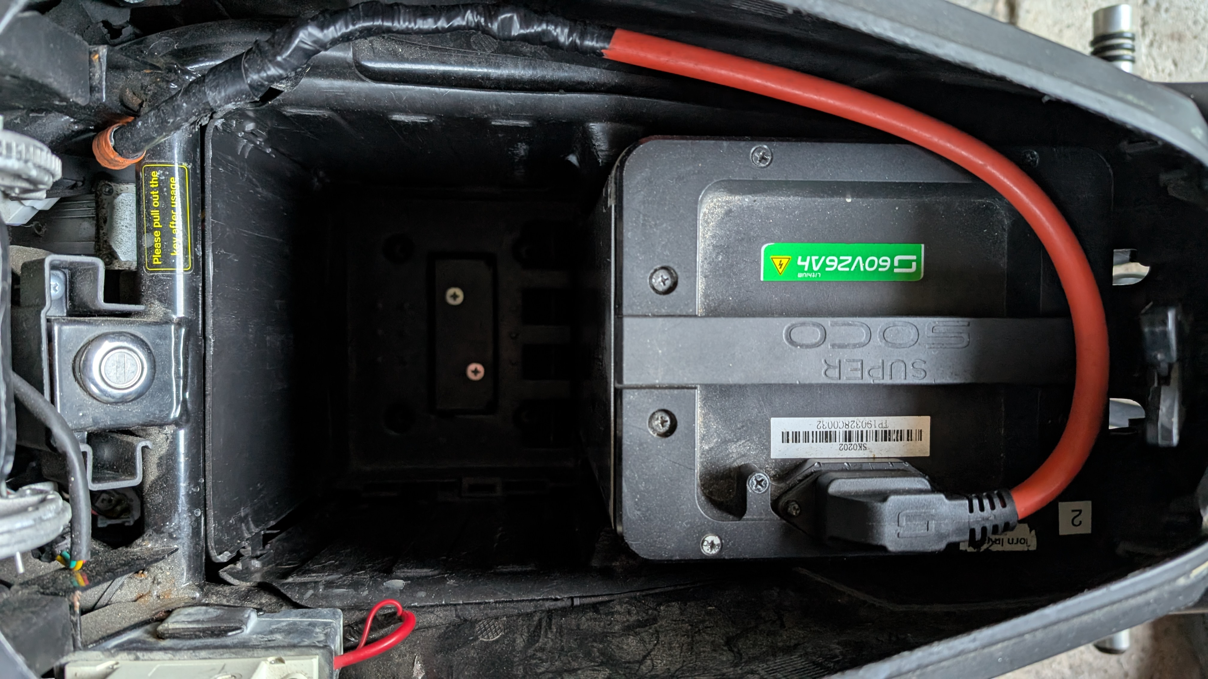 (zur Erklärung: Ich habe eine alte Super Soco TS, wo der Akku hinüber ist (Flacher Annschluß) und mir über Kleinanzeigen eine gebruachte Super Soco TS Limited (die Grüne) geholt, da diese 2 Akkus hatte (Preis 1500 €) , alleine wegen den Akkus war es mir halt wert, die sind in super Zustand und die Kapazität ist noch Top (schon getestet beim Fahren mit der alten). Die Alte TS mit den 2 Akkus hat halt 14000 Km runter und sieht ein wenig runtergerockt aus (leichter Flugrost an manchen Stellen, Gasgriff gebrochen...) , fährt sich aber 1A.