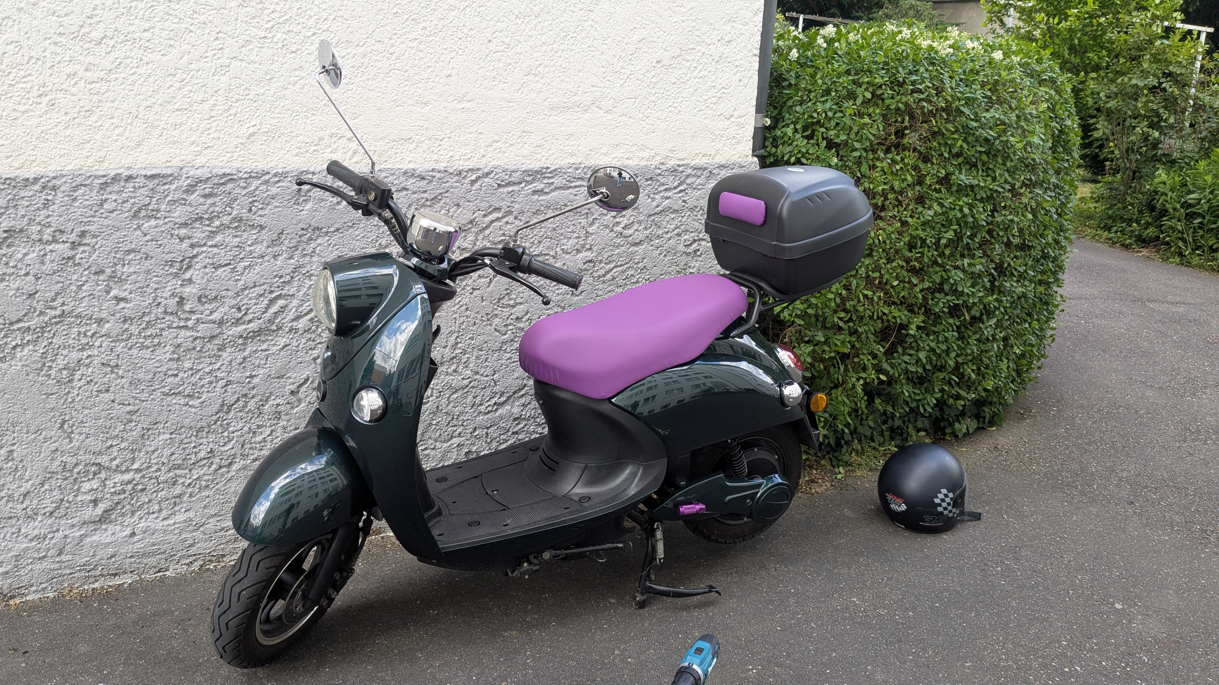 Es musste das Zündschloss getauscht, der Roller kompatibel mit den neuen Akkus gemacht und ein neuer (größerer) Sattel angebracht werden.