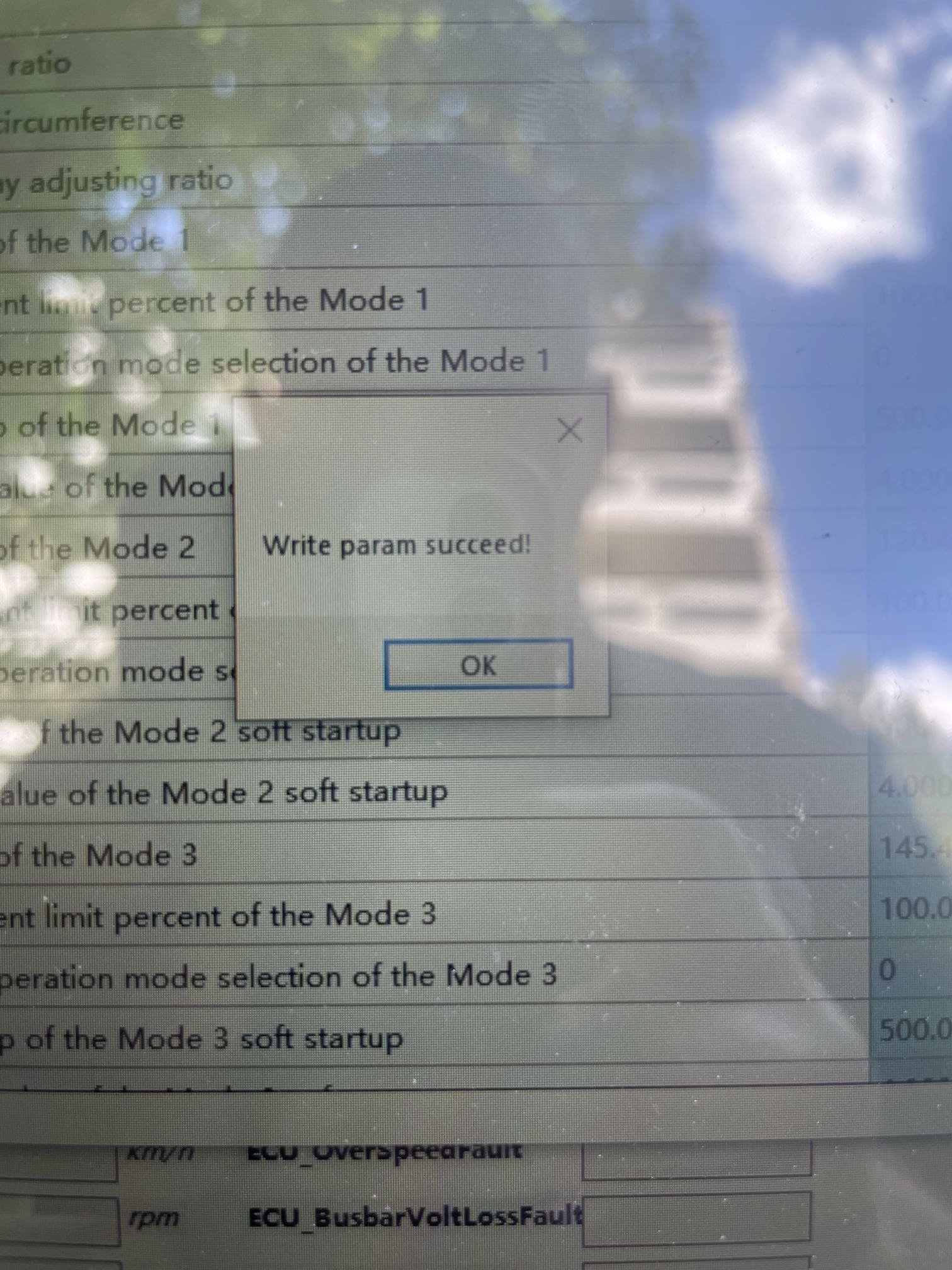 Hier wurde der Parameter geschrieben und schon war der ECO Modus auf 80km/h eingestellt .