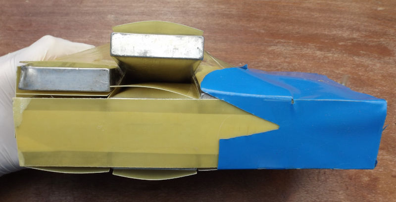 Das ist der Zellenblock. Noch. Der Schrumpfschlauch muß riesige Kräfte aushalten...