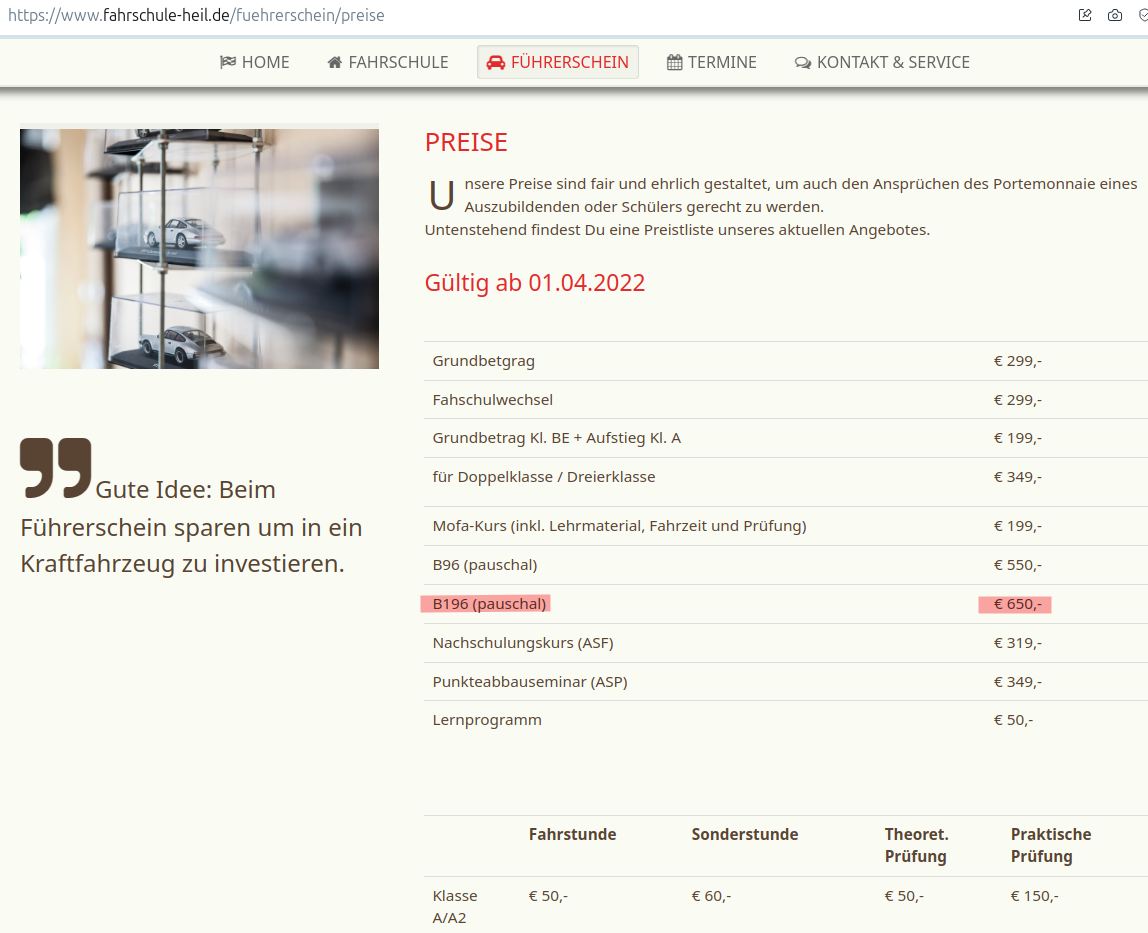 Re: B196er Führerscheinerweiterung - Liste mit günstigen Fahrschulen