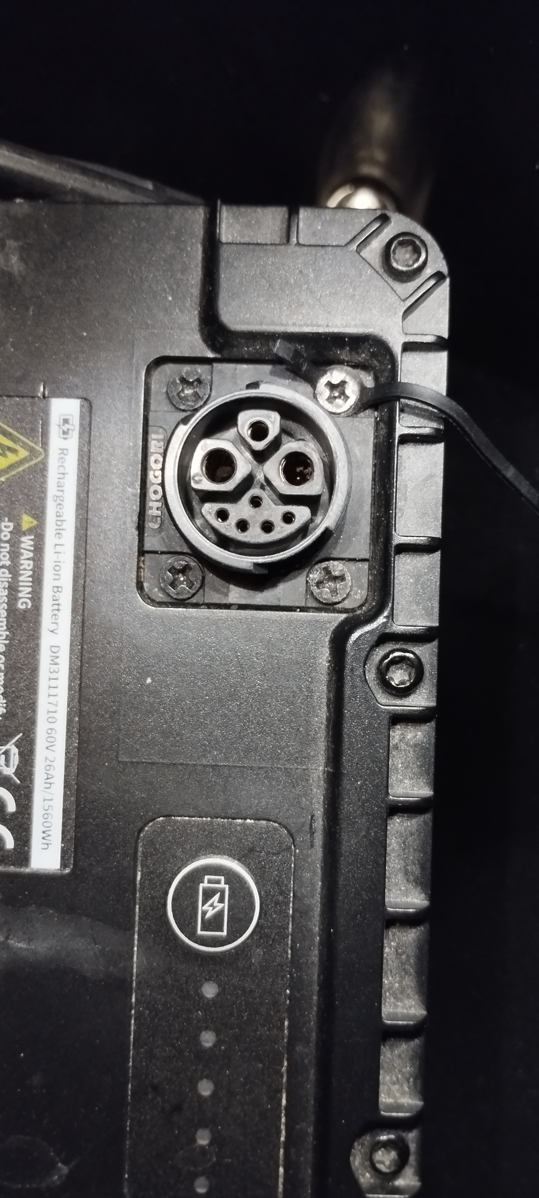 Aber Du hast offenbar die schnellere Version mit 60 Volt die jetzt nur noch mit zwei Akkus erhältlich ist. Ist da bei Dir ein Runder Stecker dran mit blauem Ring? Da wäre die Frage wieviele Pol-Stifte da iim Stecker sind?
