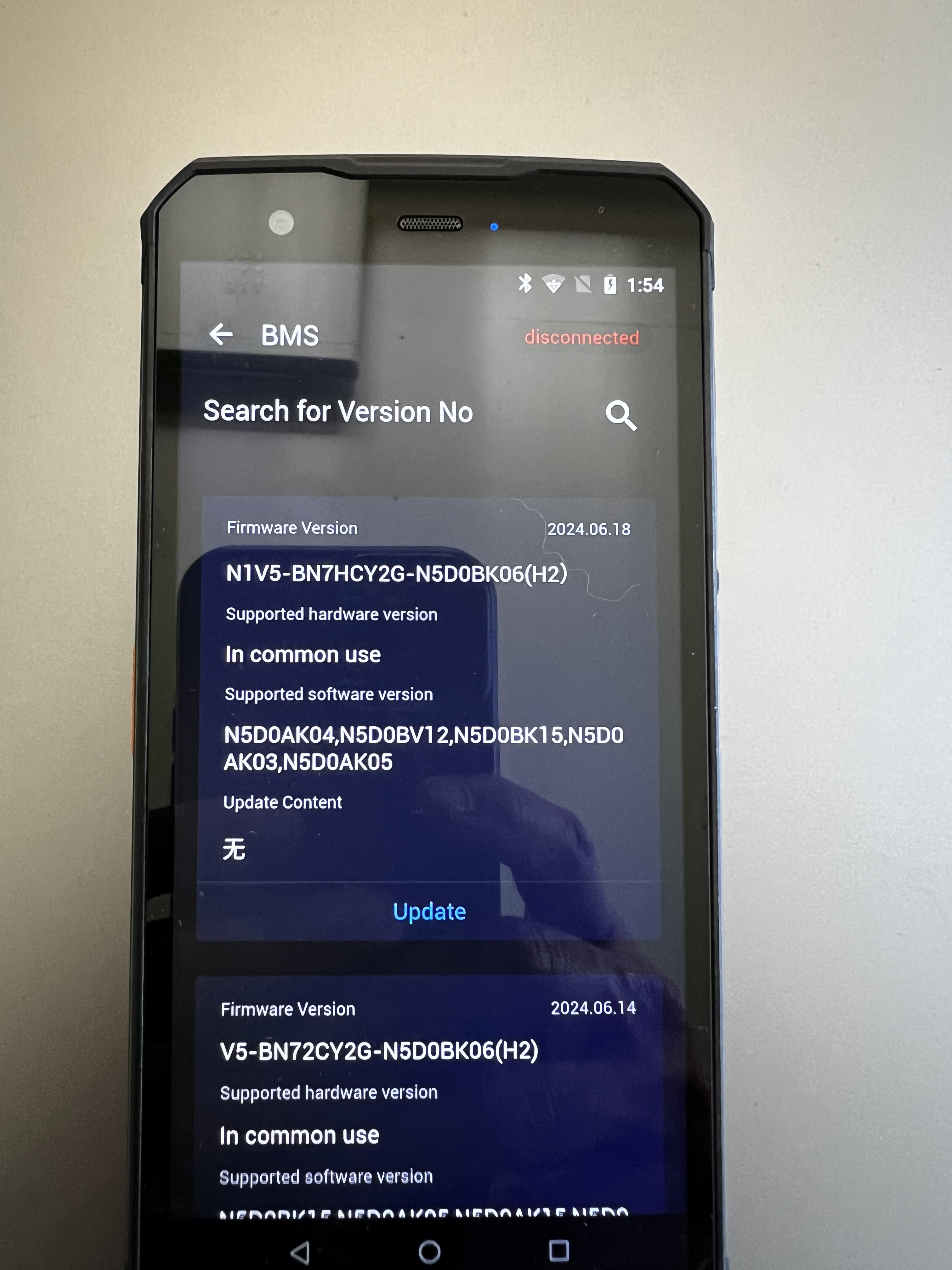 Niu Software auf dem "Phone" wurde aktualisiert, Anmeldung i.O., dann H2 Adapter wurde ebenfalls aktualisiert. (oben steht "connected")