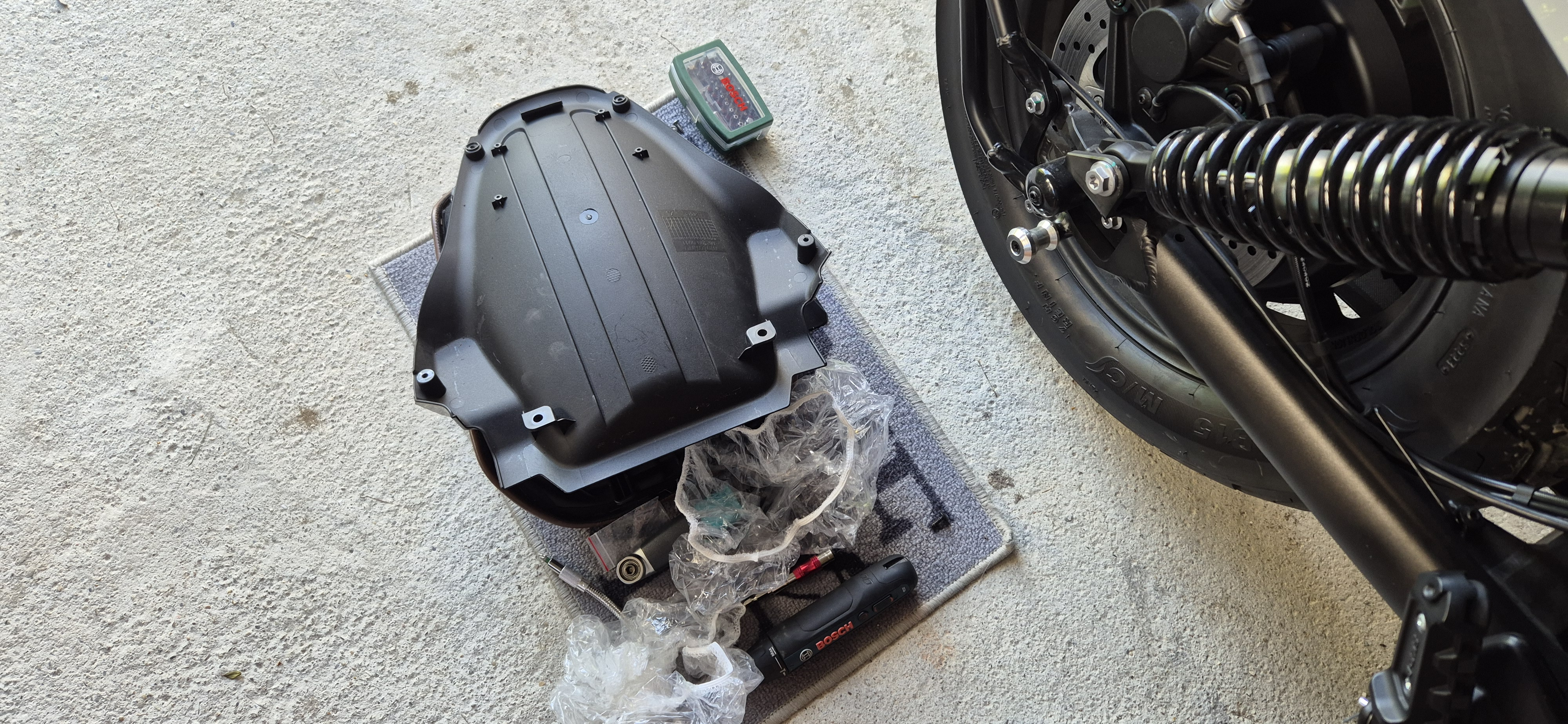 Ja genau die Abdeckung die der Sozius ersetzt. Ich habe es gestern noch geschafft. Man muss die komplette Rad-Innenverkleidung ausbauen damit man an die "Einrastlaschen" ran kommt.