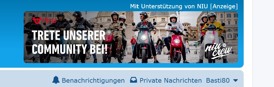 Der NIU-Account macht hier oben rechts auf der Startseite jeden Tag Werbung. Der andere Account gehört zu Kabee, ein aktives Forenmitglied und Händler aus Kassel.