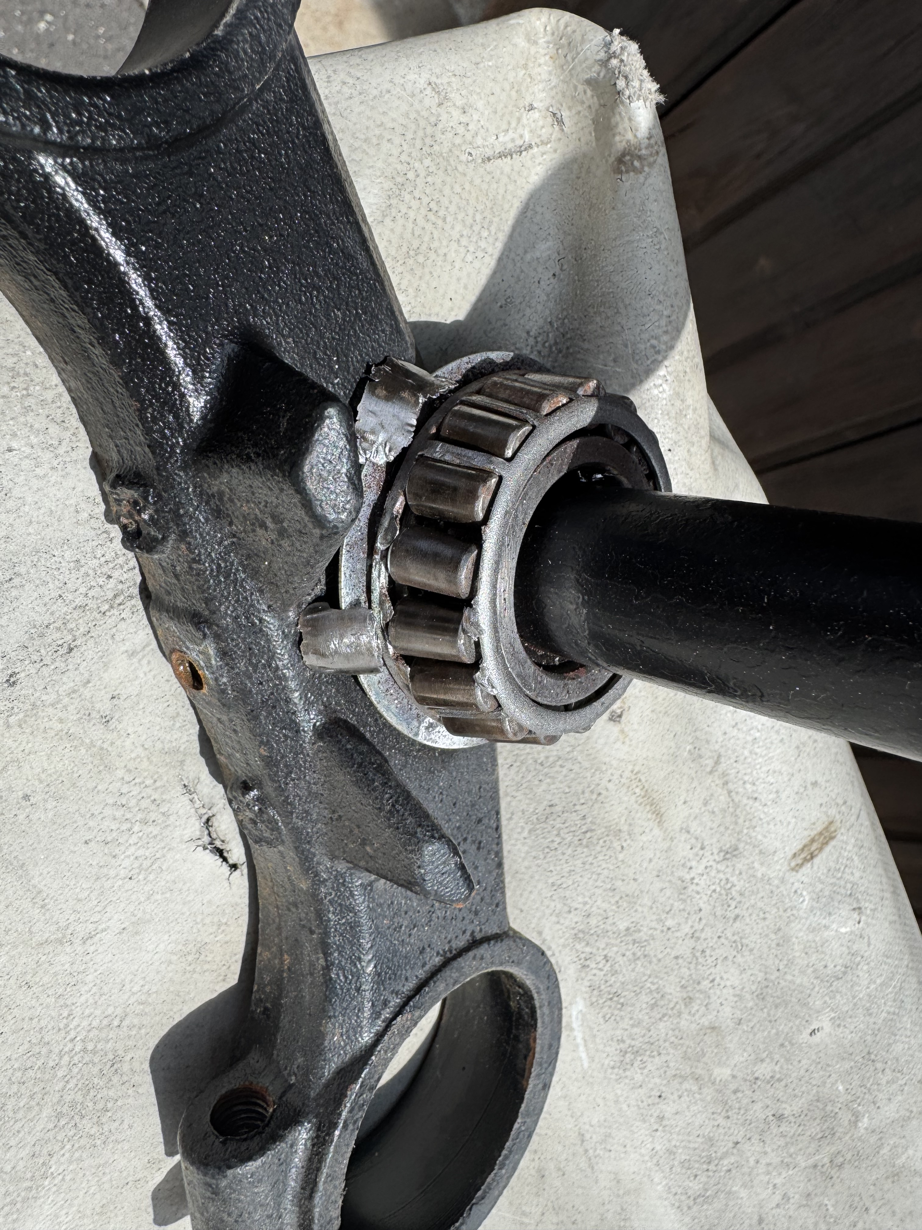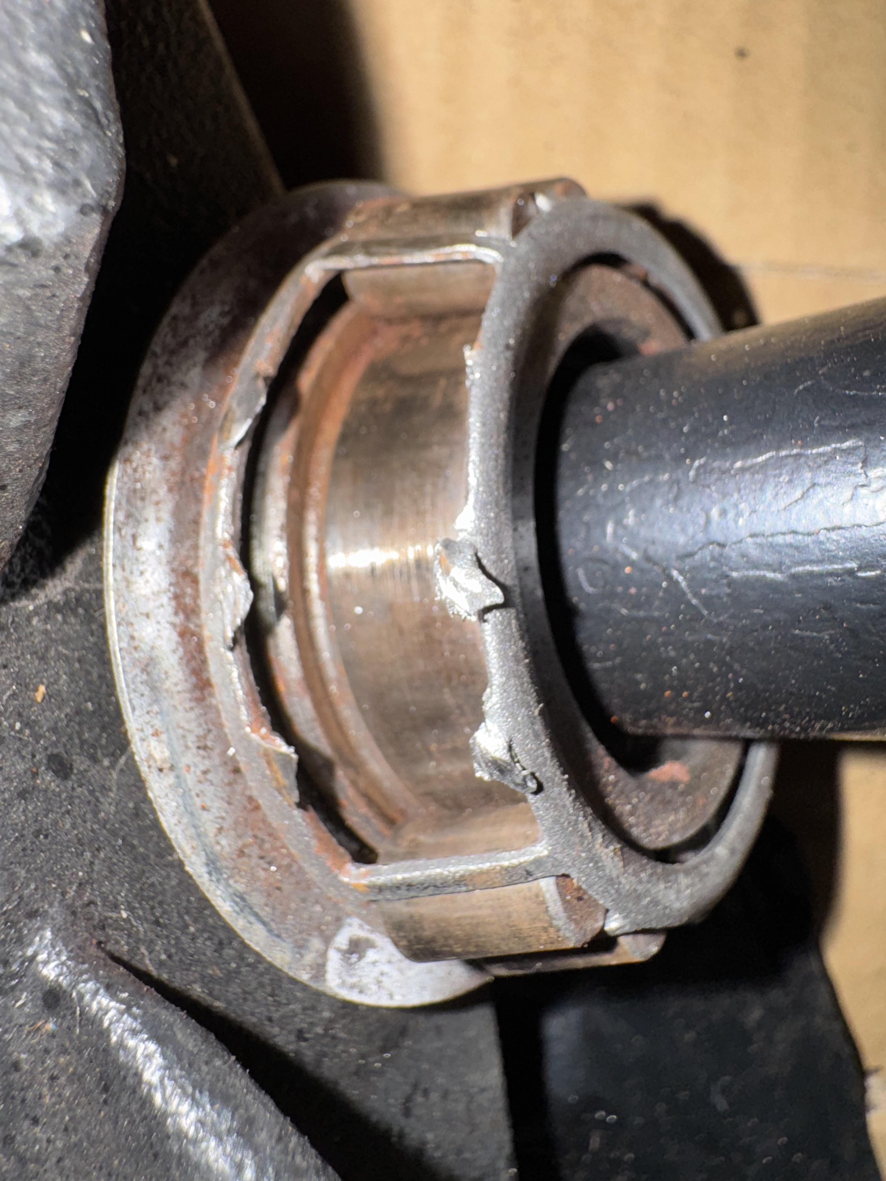 An dem oberen Lager waren Rückstände von Fett zu erkennen, das untere Lager allerdings war komplett trocken. Da wurde wohl bei der Montage nicht sehr sorgfältig gearbeitet.