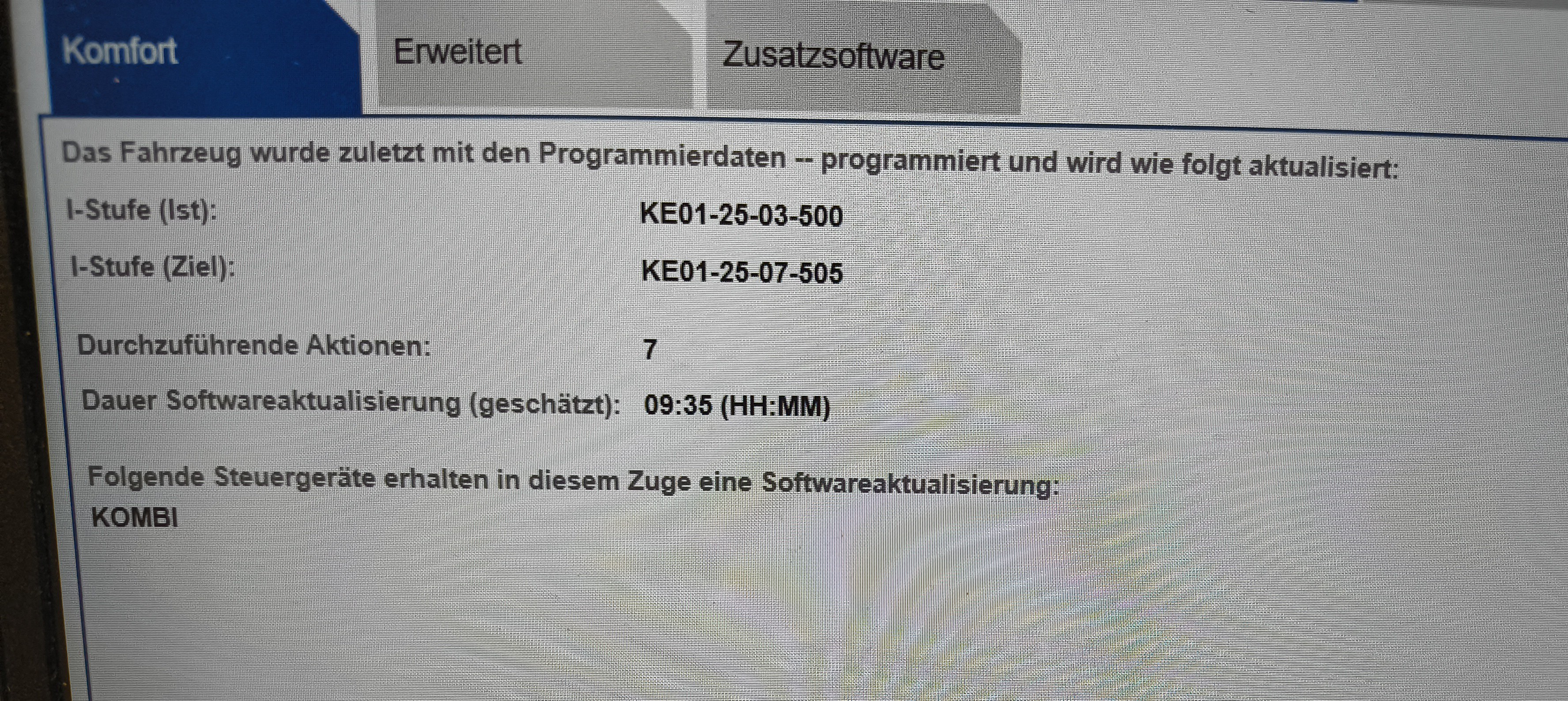 Update läuft. Die aktualisierung von März zu jetzt betrifft nur das Kombiinstrument (Display).