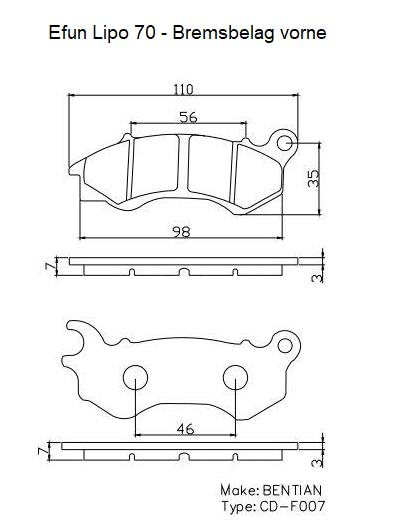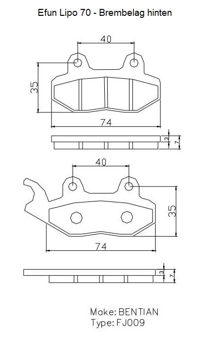 Die neuen schnellen Modelle mit z.B. 70 km/h seit um 2018 mussten für EU vorne allerdings auf CBS-Bremsen umgerüstet werden (i. d. R. 3-Kolben) mit anderer Belagform. Falls vorne der gleiche China-CBS-Bremssattel eingesetzt wird, wie beim NIU N-GT, sähen die Beläge dann so aus: