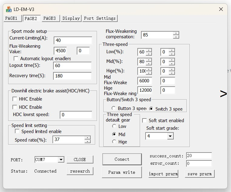 Bei welchem Port das genau eingestellt werden muss, kann ich Dir nicht sagen. Aber meines Wissens wird da umgeschaltet auf die Erkennung eines Fuss-Pedals. Die throttle voltage Settings auf page1 sind Dir ja vermutlich bekannt. Normalerweise sind das die Einstellungen für einen Hall-Gasgriff, mit unterer Fehlerschwelle, Unteres Ende des Regelbereichs=idle(kein Gas), Oberes Ende des Regelbereichs= full throttle und Obere Fehlerschwelle.