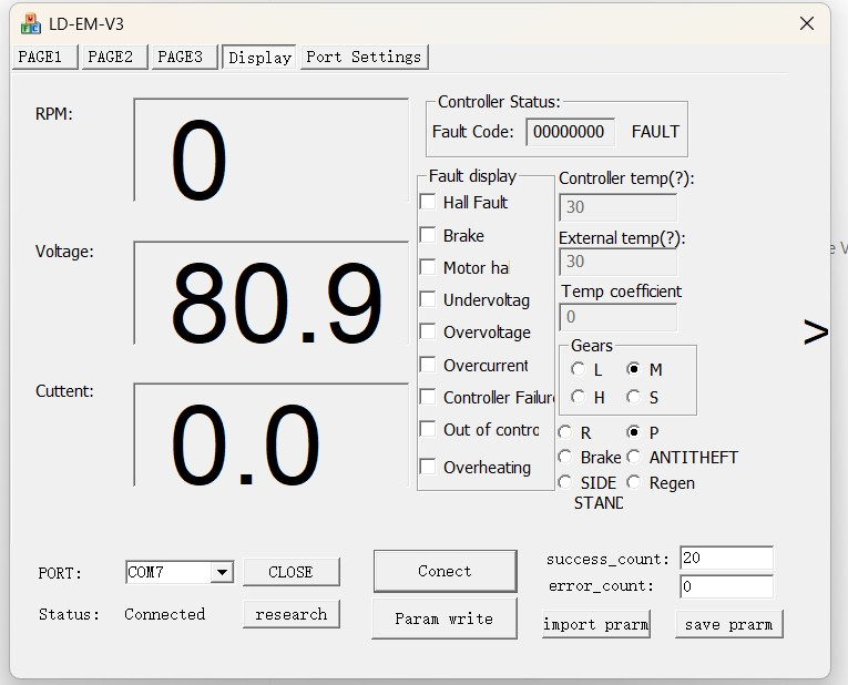 in der Software siehst Du auf der seite display (Spalte fault Display), ob ein Fehler die Motorfunktion verhindert.