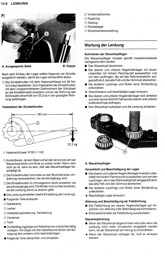-Zur Überprüfung Fahrzeug aufbocken, das Vorderrad darf keinen Bodenkontakt haben.