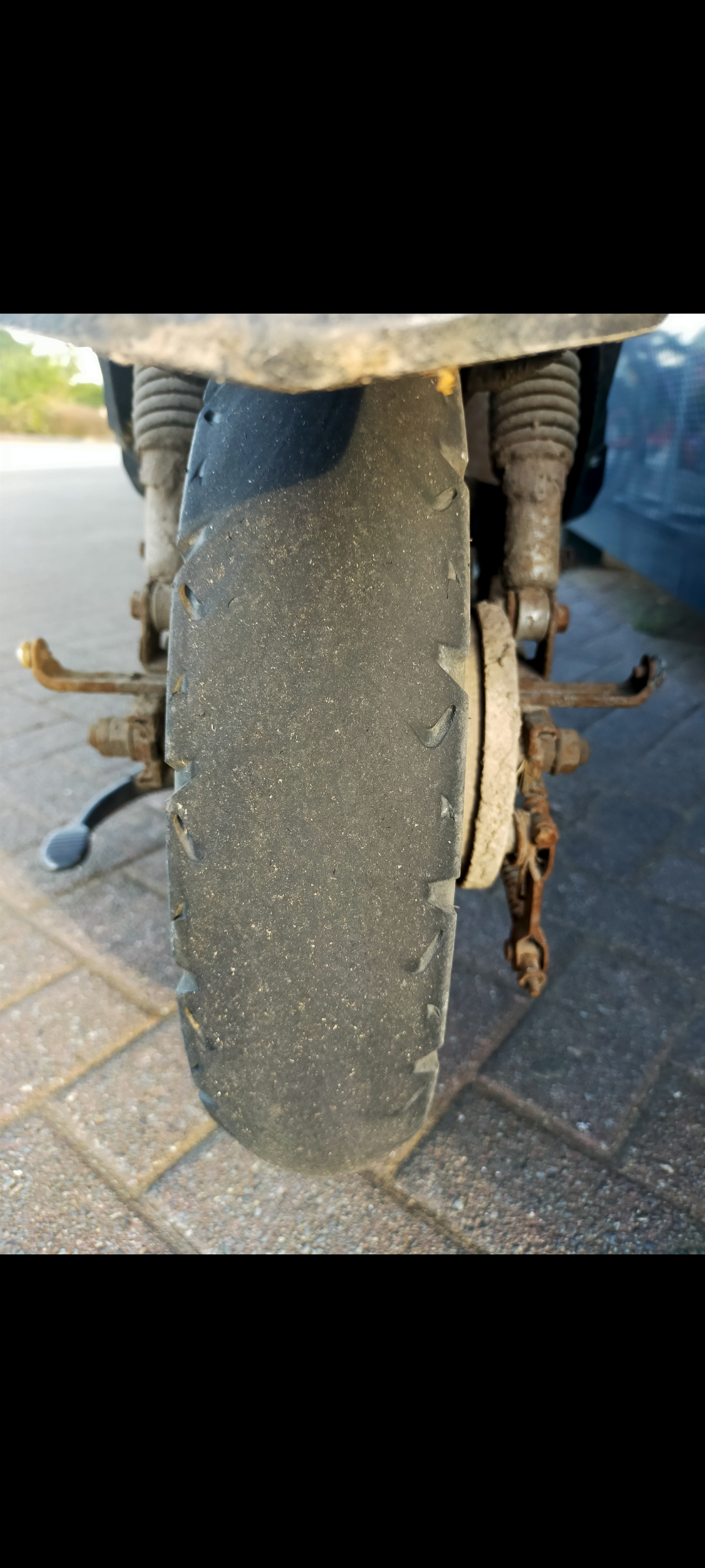 Leo Elektroroller nach echten 25000 gefahrenen km und 6 und einhalb Jahren Nutzung, (auch im Winter) So rund und profillos sieht ein original auf dem Fahrzeug befindlicher Reifen aus.