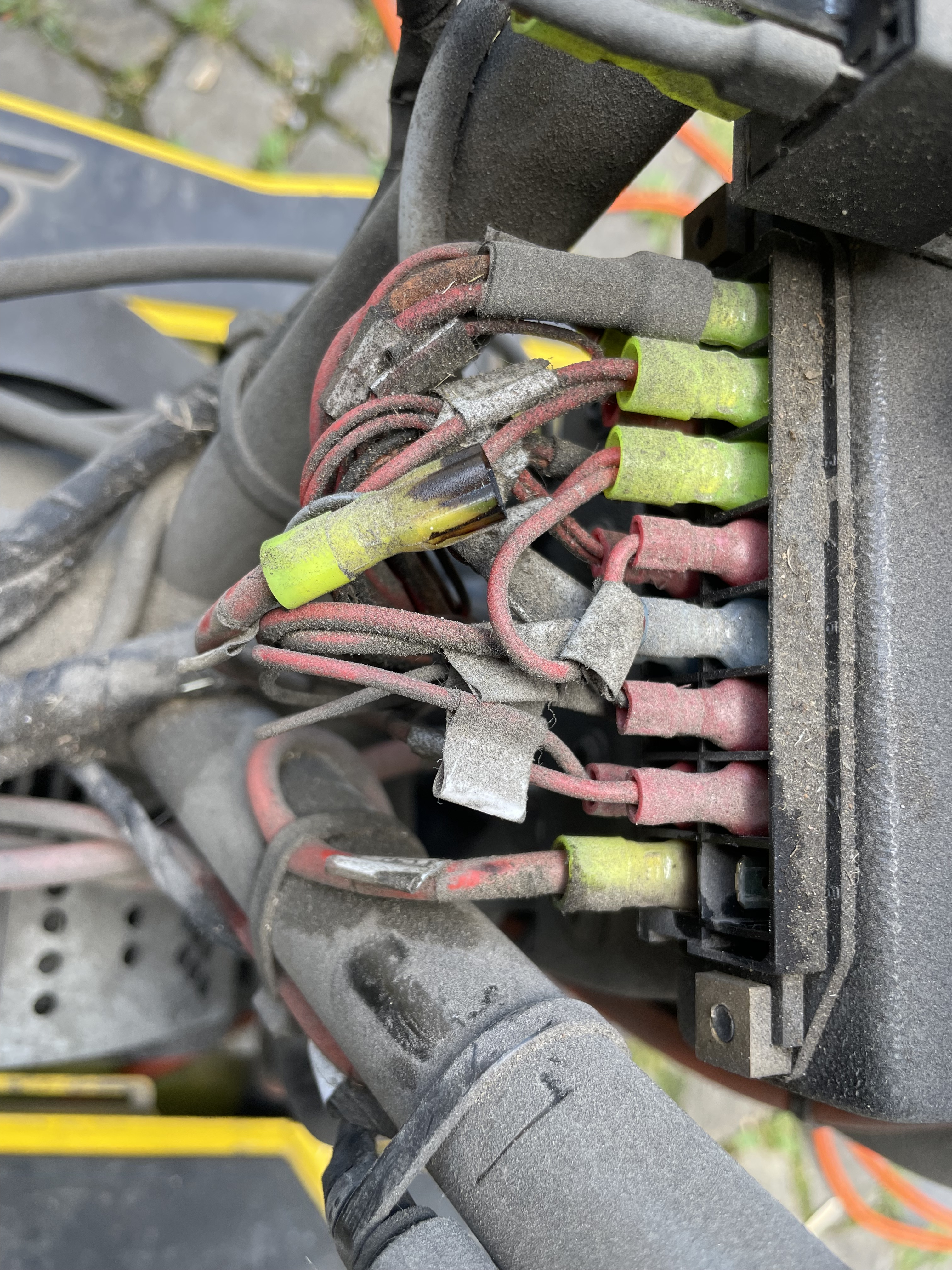 - Ich habe alle Kabel auf der Rückseite der Sicherungsbuchsen beschriftet und abgezogen. Danach bin ich mit den ausgebauten Buchsen zur Einschätzung zum Rollermechaniker meines vertrauens gefahren. Er hat mir geraten die durchgebrannte Buchse nicht mehr zu verwenden und mir eine einzelne Buchse mitgegeben (ca. 5.-), die ich direkt an die betroffenen Stecker anschliessen konnte.