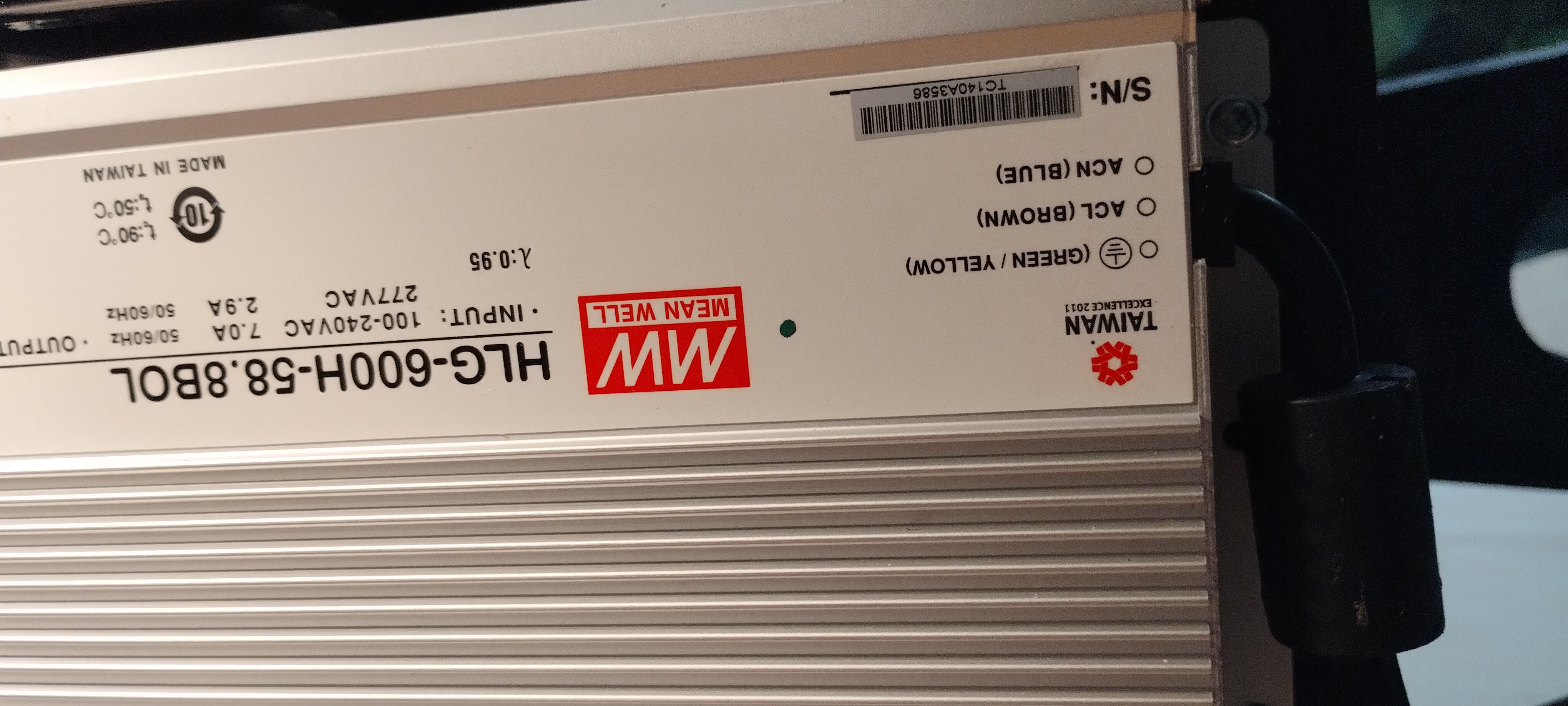Schlauerweise kommt dann auf der anderen Seite des Laders auch 58,4 V raus und verschwindet wieder durch einen abgedichteten Durchgang in den eigentlichen Raum mit den Zellen. Sind insgesamt 4 Kabel SCHWARZ/ROT/Gelb/Blau -- wobei Geld und Blau eher Steuerkabel sind (dünn).