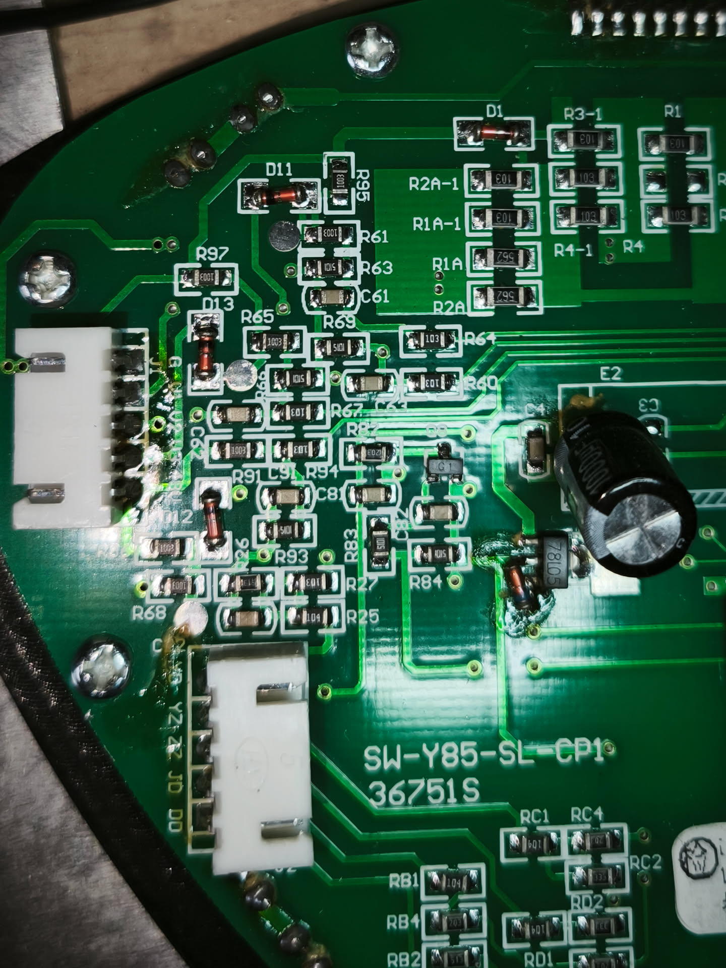 - die originalen 48V kommen über R4-1 und werden in zwei Bereiche mit je ~24V umgewandelt. R1/2A(-1) ist für die Hintergrundbeleuchtung und der Bereich von R4 für die Versorgung vom Spannungswandler 78L05, der die eigentlichen Chips mit 5V versorgt.
