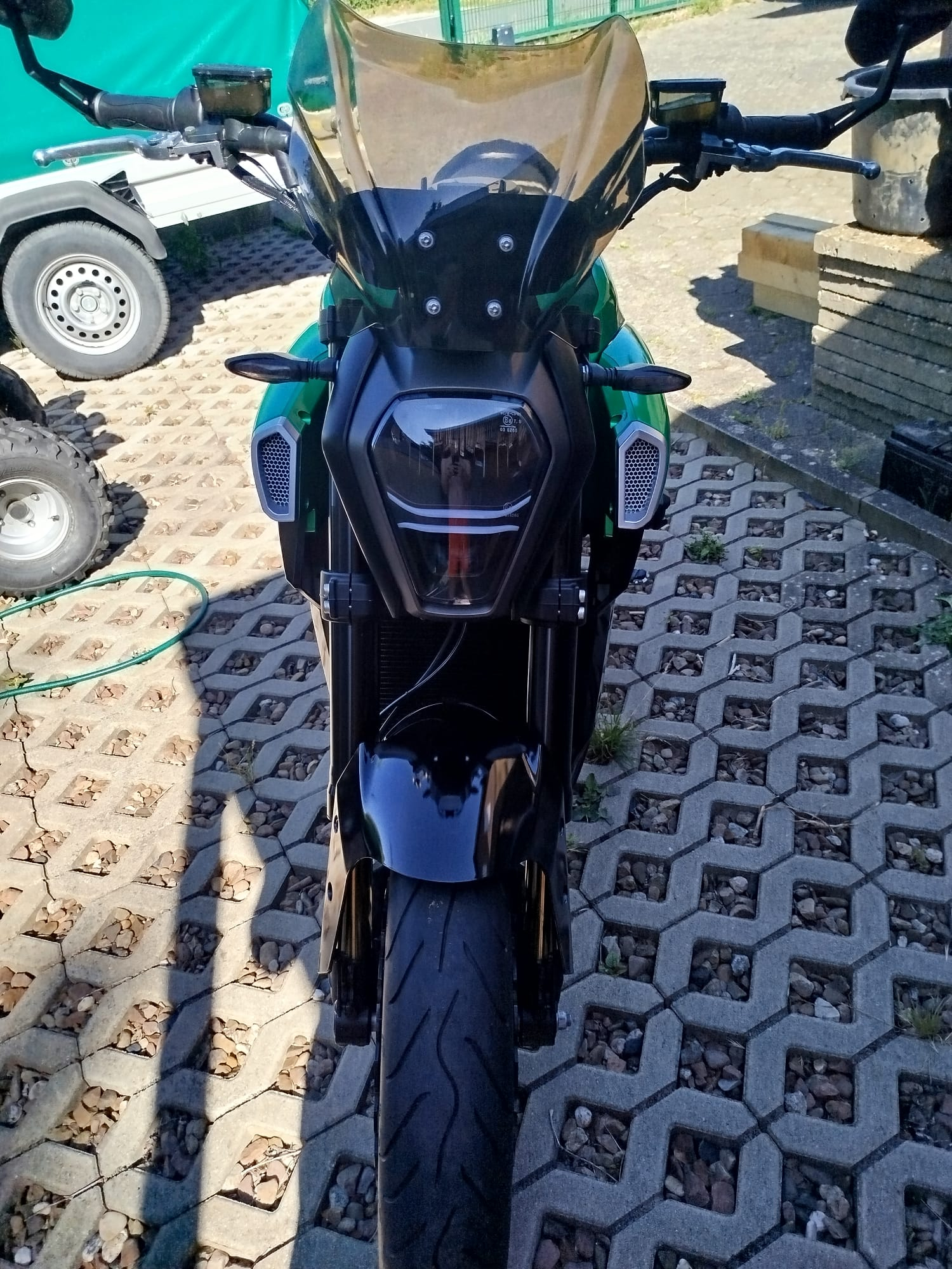 Das Windshield nimmt den Druck vom Körper aber leider nicht vom Helm (dafür ist es zu kurz).