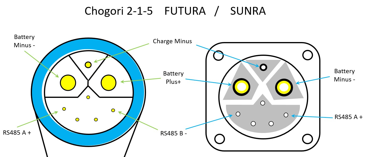 die Steckverbindung ist lat der Beriche hier bei SUNRA-Fahrzeugen üblicherweise so belegt: Ein Kabelstrang funktioniert ja mit beiden Akkus.