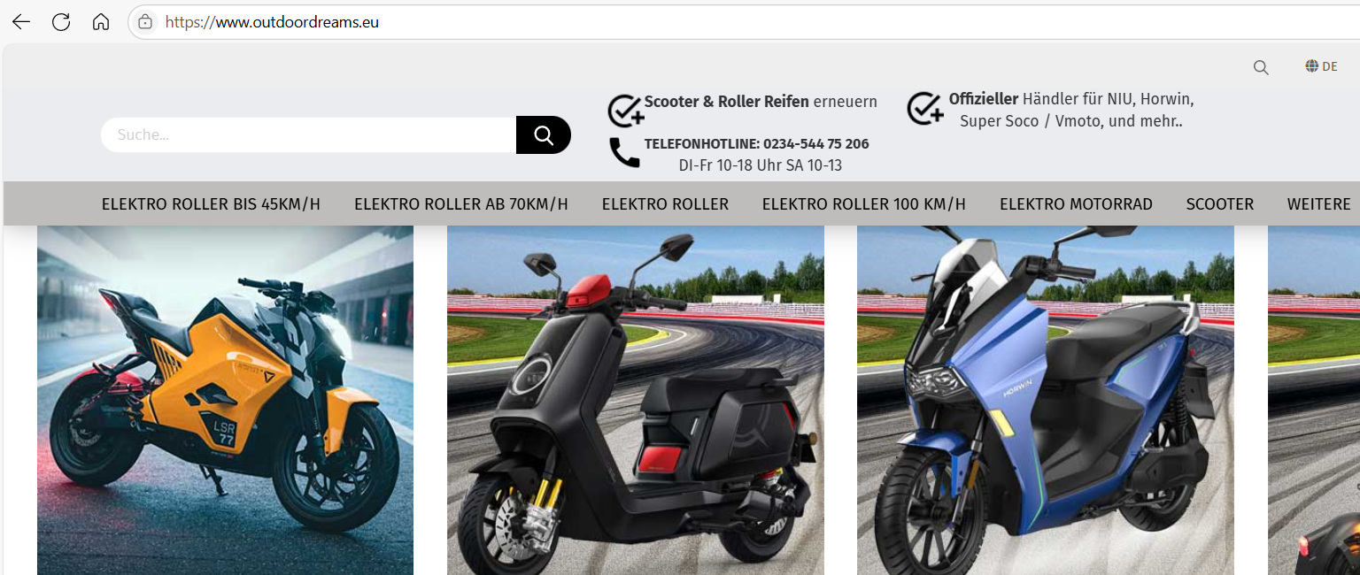 Die CR6 ist ja schon länger nicht mehr im Sortiment. Versuche es mal bei Outdoordreams in Bochum. Telefonnummer und Internetlink sind im Screenshot. Email: info@outdoordreams.eutsztsz hat geschrieben: Mo 9. Jun 2025, 21:53 ich hab auch ein Kettenproblem bei meiner CR6, siehe Strang unter Motorrad. Weiss jemand ob das eine vergleichbare Kette ist oder wo ich da die Details erfahre? Habe schon Haendlern geschrieben, meiner in Berlin hat Horwin aus dem Sortiment geschmissen...