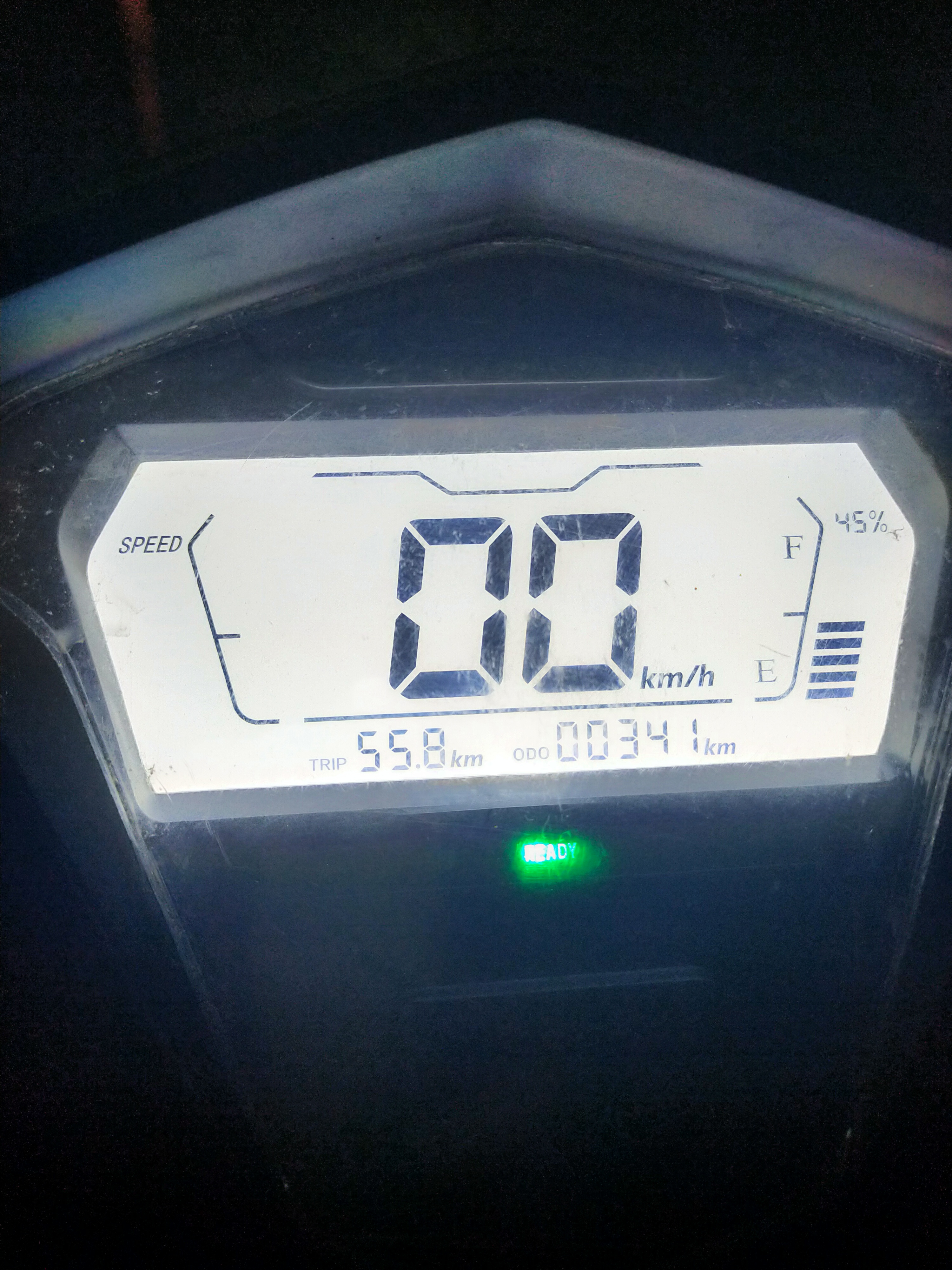 heute 90,9 km, davon die letzten 900 m ständig mit dem Fuß den Rollermotor unterstützt, so wie man als Kind Roller ohne Motor fuhr, 50 Meter. Neben her gelaufen bis der Kontroller den Motor abgeschaltet hat. Die letzten 30 Meter habe ich den Roller nach hause geschoben. Die Akkuanzeige blinkte rot bei ca.83 km laut Tacho.