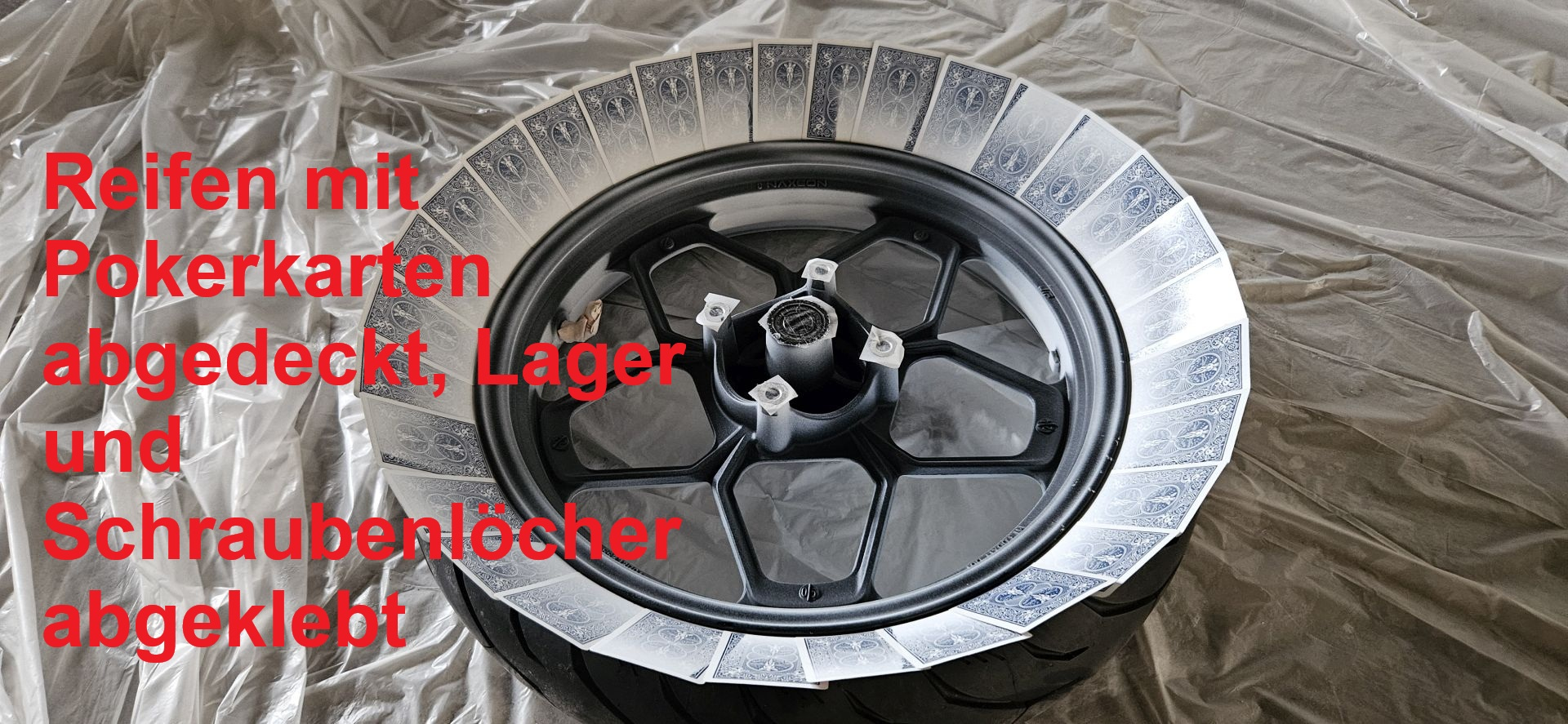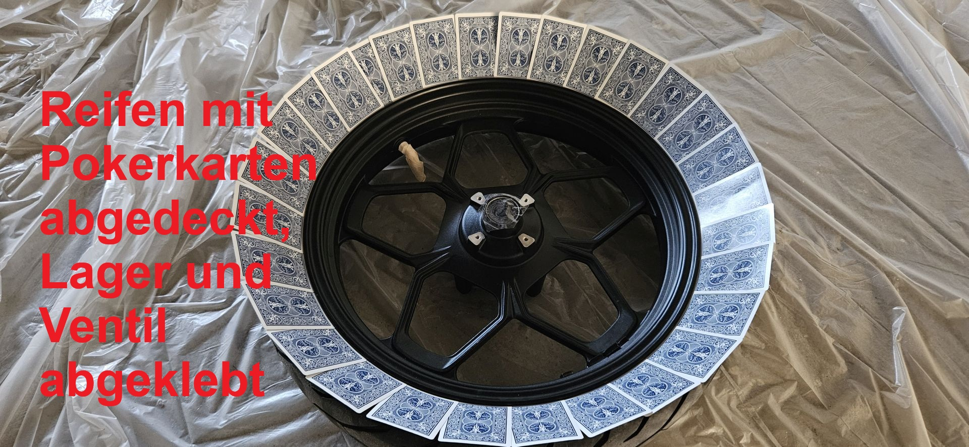 Ich habe mich bewusst für eine nicht haftende Einfärbemöglichkeit entschieden da ich zunächst testen wollte ob mir eine weiße Felge ohne Cover überhaupt gefällt / zum weißen Motorrad passt.