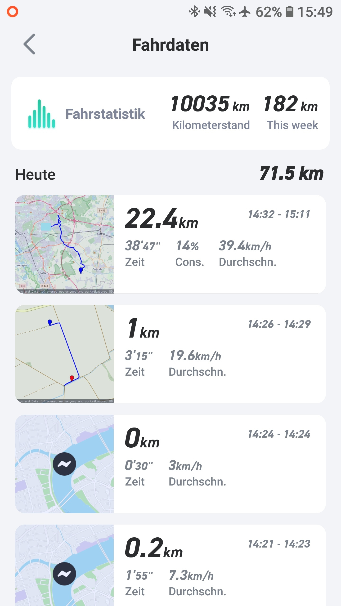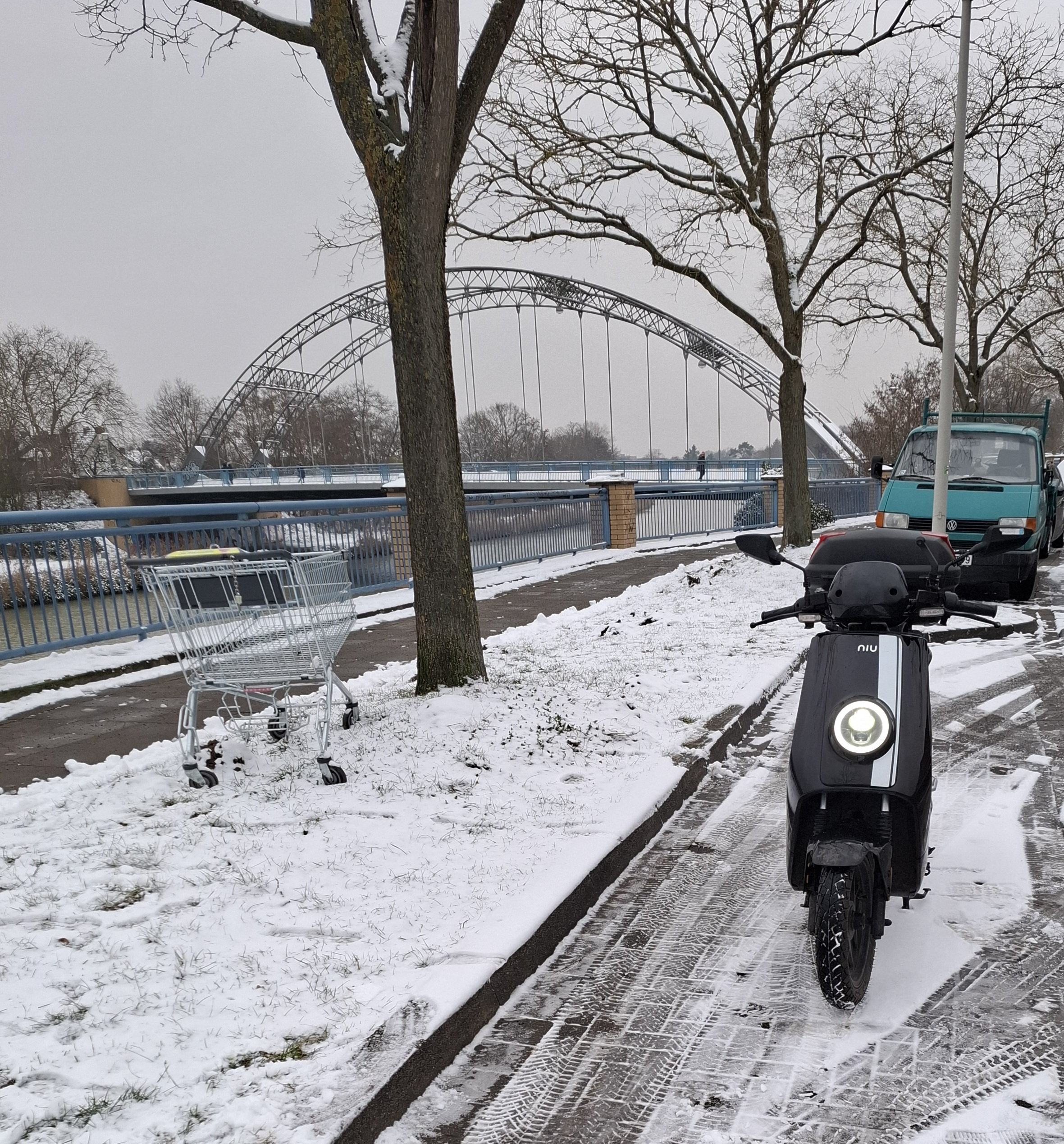 heute war das Wetter gut und ich hatte Zeit. Also mal den NIU raus und ne Reichweiten fahrt gemacht. Es ging mit Vollgas ( 54 km/h ) durch die Stadt ( ca. 10 % ) und den Rest über Landstraße und durch Dörfer. Zu 95 % mit Tempomat gefahren. Wind 17 km/h aus N-O Temperatur 8°.
