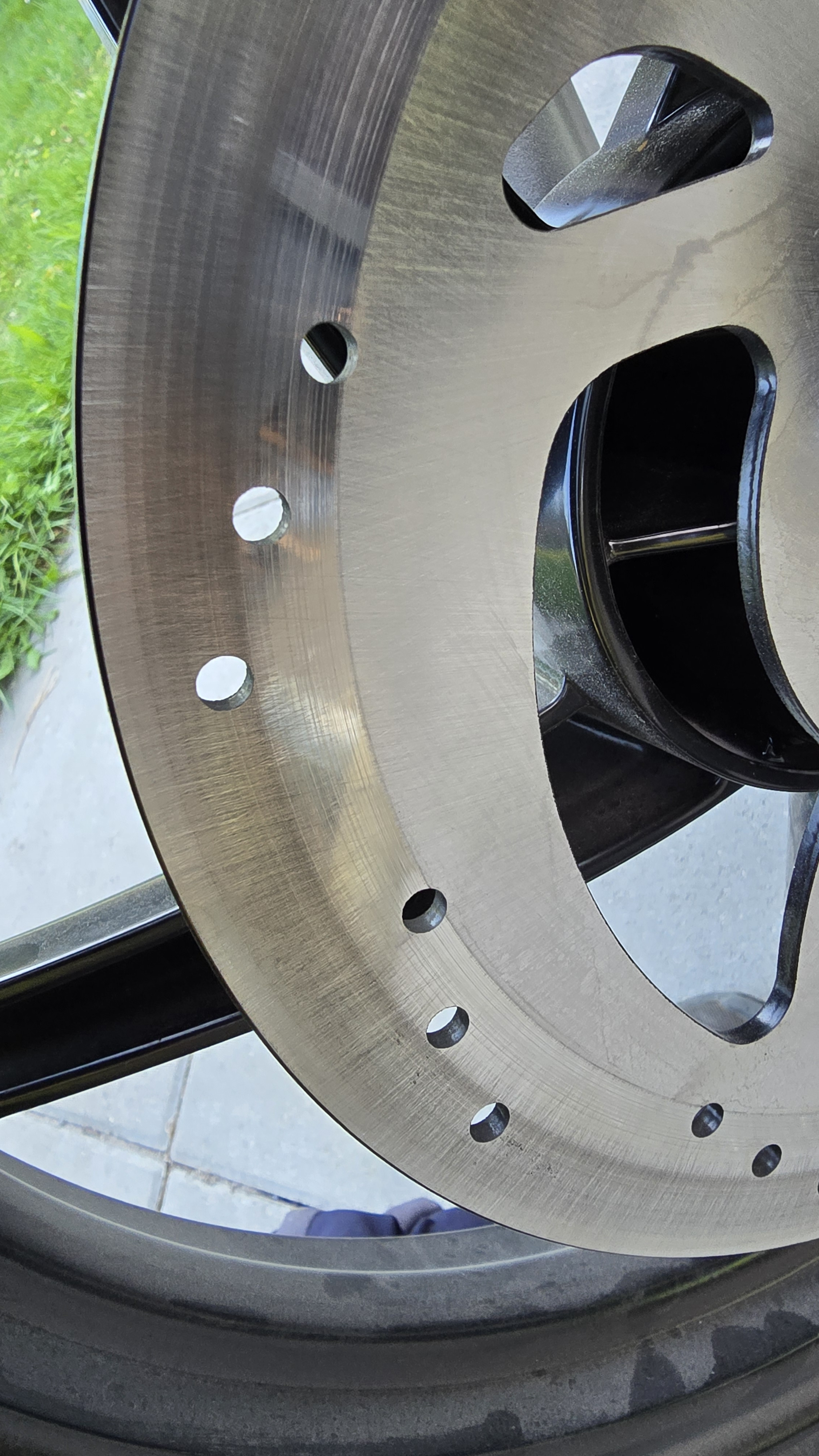 Hallo Didi, ich bin Deiner Meinung, dass eine neue Bremse natürlich erst "eingebremst" werden muss. Das habe ich gemacht und jetzt hab ich das Problem. Auf dem von Dir gezeigten Foto sind "Kontaktspuren" der Bremsklötze auf der Bremsscheibe zu sehen. 2 schmale Ringe. Demnach würde der Bremsklotz sehr parallel zur Bremsscheibe liegen und wirklich nach wenigen Kilometern auf der ganzen Fläche aufliegen. Der Rückstellweg der Bremsklötze nach einem Bremsvorgang und somit der Spalt zwischen den Bremsklötzen reicht aus, dass die Bremsscheibe wieder frei laufen kann nach jedem Bremsvorgang. So wie Du sagst, paarmal beherzt Bremsen. Bei mir liegt aber die Bremsscheibe scheinbar "diagonal" im Spalt zwischen den Bremsklötzen. Das ist auf den Bildern sehr schön zu sehen. Eine Seite Kontaktspuren der Bremsklötze am Innenradius der Bremsfläche, andere Seite am Außenradius der Bremslfläche der Bremsscheibe. Damit reicht der Rückstellweg der Bremsklötze nicht aus, die Klötze schleifen permanent an irgend einer kleinen Stelle auf der Bremsscheibe. Bei Fahrt schwingt sich das ganze auf und erzeugt furchtbare Geräusche. Aufgebockt hört man das Dauerschleifen sehr schön beim Drehen des Vorderrades von Hand. Das Vorderrad bleibt auch nach nichtmal einer Umdrehung auf Grund der Reibung wieder stehen. Ein mp4 Video der gruseligen Geräusche lässt sich mit Hinweis auf "unzulässiges Dateiformat" hier leider nicht einbinden. Die Bremsklötze können einfach nicht kippen und sich so der Bremsscheibe anpassen, dass sie parallel und mit ganzer Fläche auf der Bremsscheibe aufliegen. Das Ganze ist bei mir auch erst nach ein paar beherzten Bremsungen innerhalb der ersten 12 km aufgetreten und geht nichtmehr weg. Ich wollte nicht erst einige Kilometer mit gezogener Bremse fahren, damit die Bremsscheibe die Bremsklötze schief schleift.