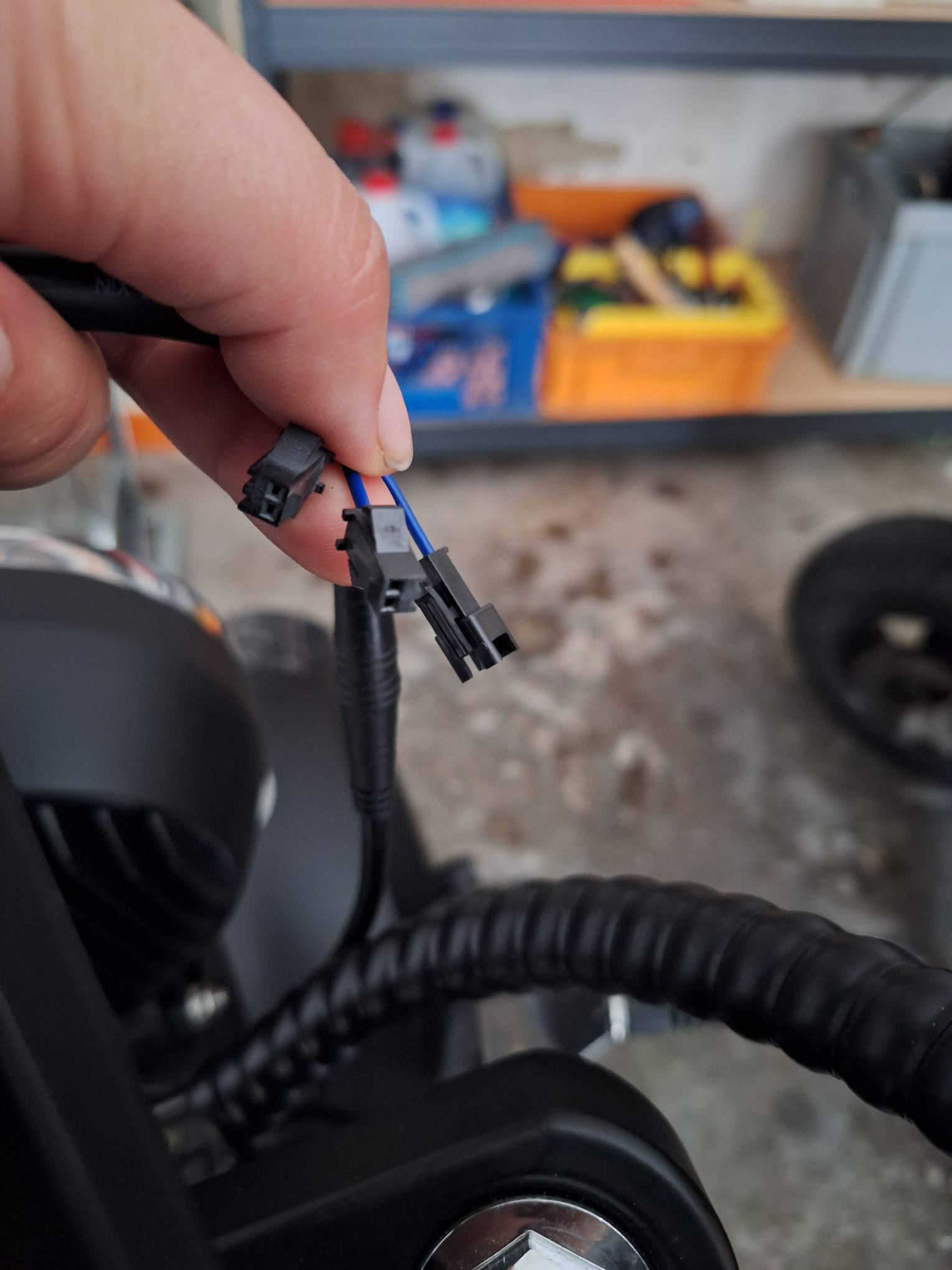 Laut Techniker soll ich die 2 blauen Kabel zusammen stecken. Das 3te auf dem Bild weiss ich leider nicht wohin. Ich habe auch eine Box mit geliefert bekommen die ich da auch noch irgendwie anschließen soll. Aber auch hier finde ich kein Gegenstück.