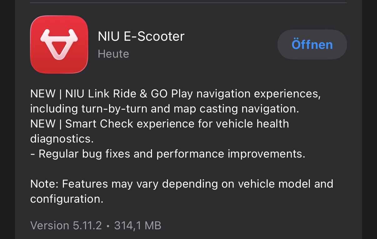 Gestern gab es da ein Update der iOS NIU App.