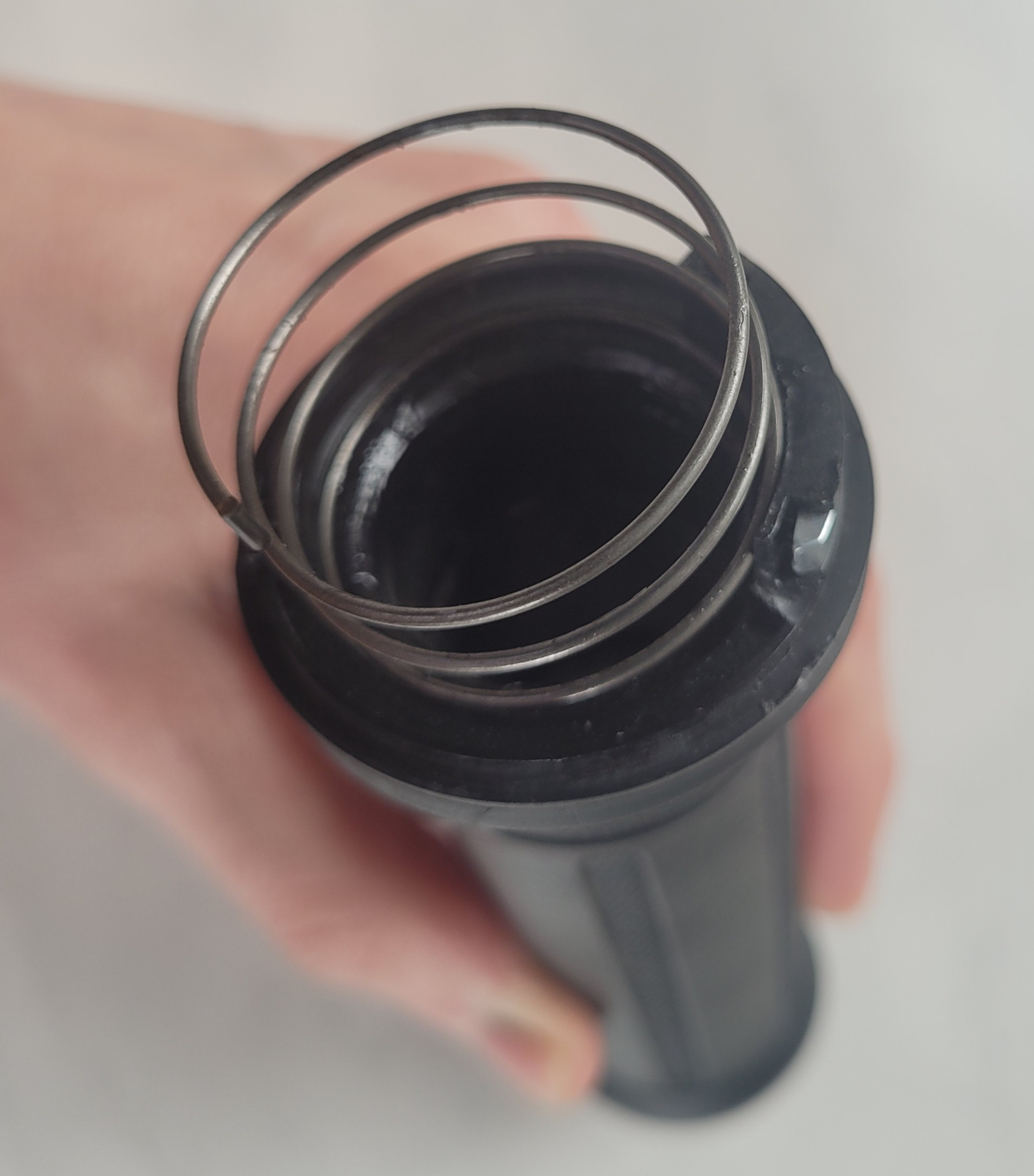 Ich habe gerade meinen zweiten Gasgriff ersetzt. In beiden Fällen war die Feder in Ordnung, aber der Motor gab weiterhin Leistung, auch wenn der Gashebel geschlossen war. Das Fahren über eine Unebenheit konnte die Leistung plötzlich erhöhen. Jetzt ist der Scooter aus der Garantie, also habe ich beschlossen, einen Blick hineinzuwerfen. In meinem Fall ist die Ursache ein gebrochenes Stück Plastik, das den Hall-Effekt-Magneten hält. Der Magnet kann dann verrutschen, was dazu führt, dass der Sensor eine falsche Gasposition liest. Wahrscheinlich wird das Plastik während des Herstellungsprozesses geschwächt, wenn der Magnet hineingedrückt wird. Während des normalen Betriebs dient das geschwächte Plastik auch als Anschlag, wenn der Gashebel auf 100% geöffnet wird. Irgendwann bricht es.