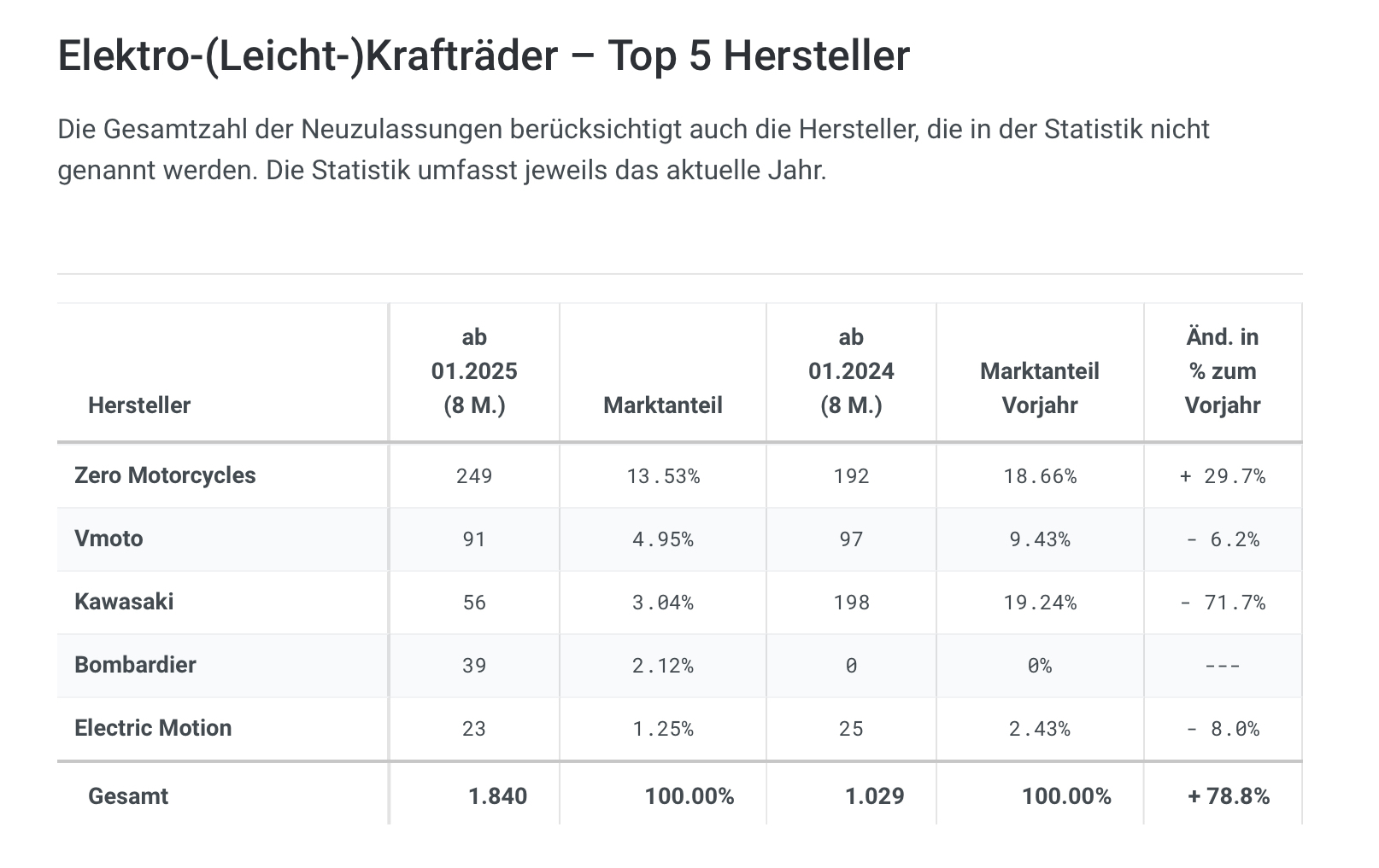 Nachdem Elektromotorräder in Deutschland im Vergleich zum restlichen Markt so richtig abgehen und bei den Elektromarken wiederum ZERO ist das auch gut so.