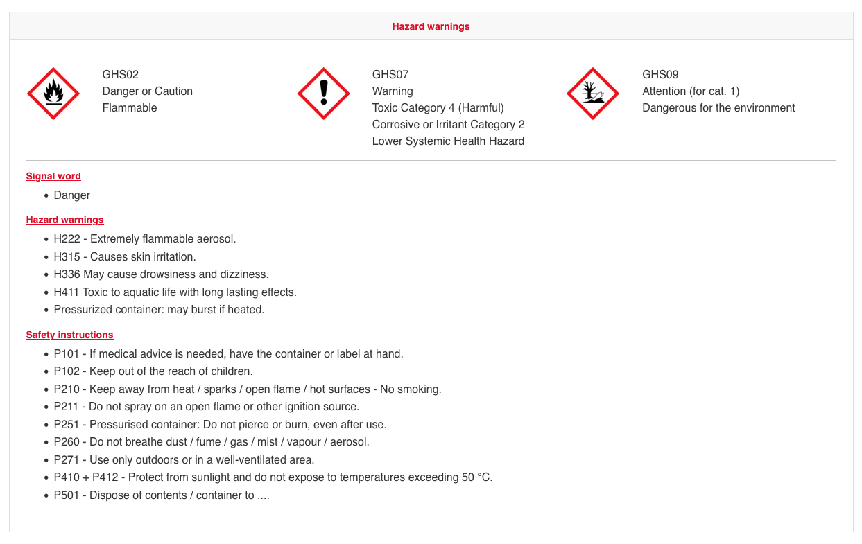 Oder das komplette Sicherheitsdatenblatt (wobei da heutzutage kaum noch was über die Inhaltsstoffe und Zusammensetzung steht):