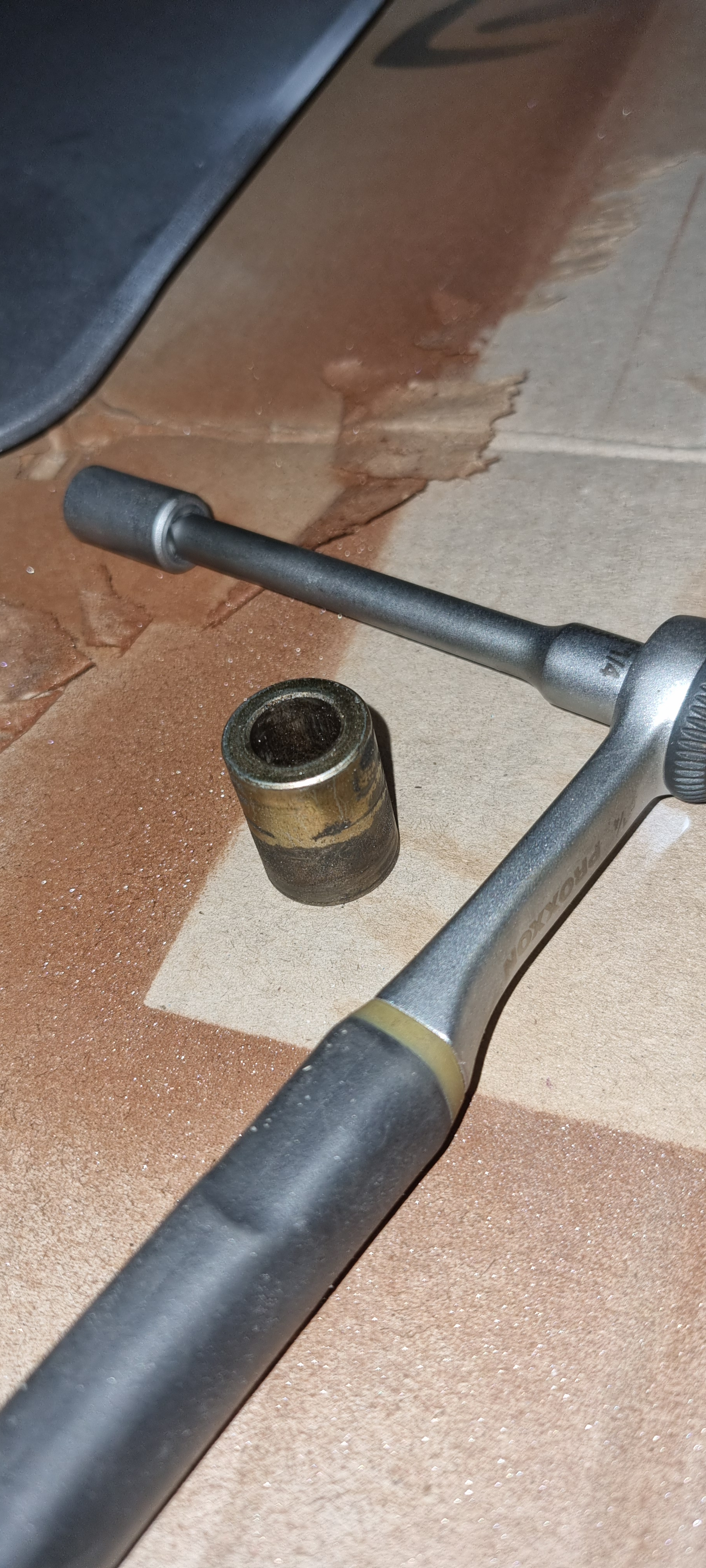 Ich habe bei Einbau des Rades zwei dieser Hülsen verbaut eine links und eine rechts des Radlagers, das ist es ja was mich verwirrt. Die Achsschraube wäre auch nicht lang genug für eine dritte dieser Hülsen. Die anderen beiden waren auch schwarz, diese hat eher einen Goldton.