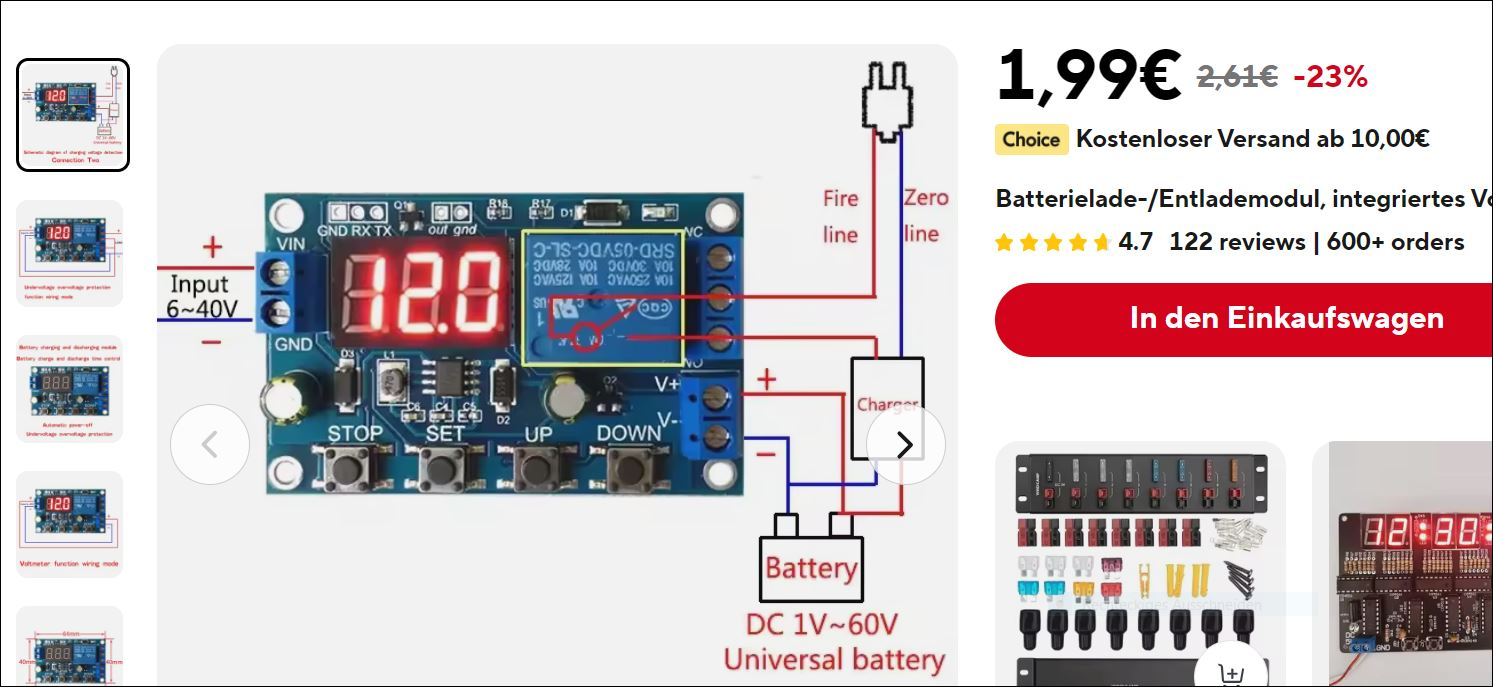 Ok, es gibt aber von Ali Module für 10 EUR welche bei erreichter Ladespannung abschalten.