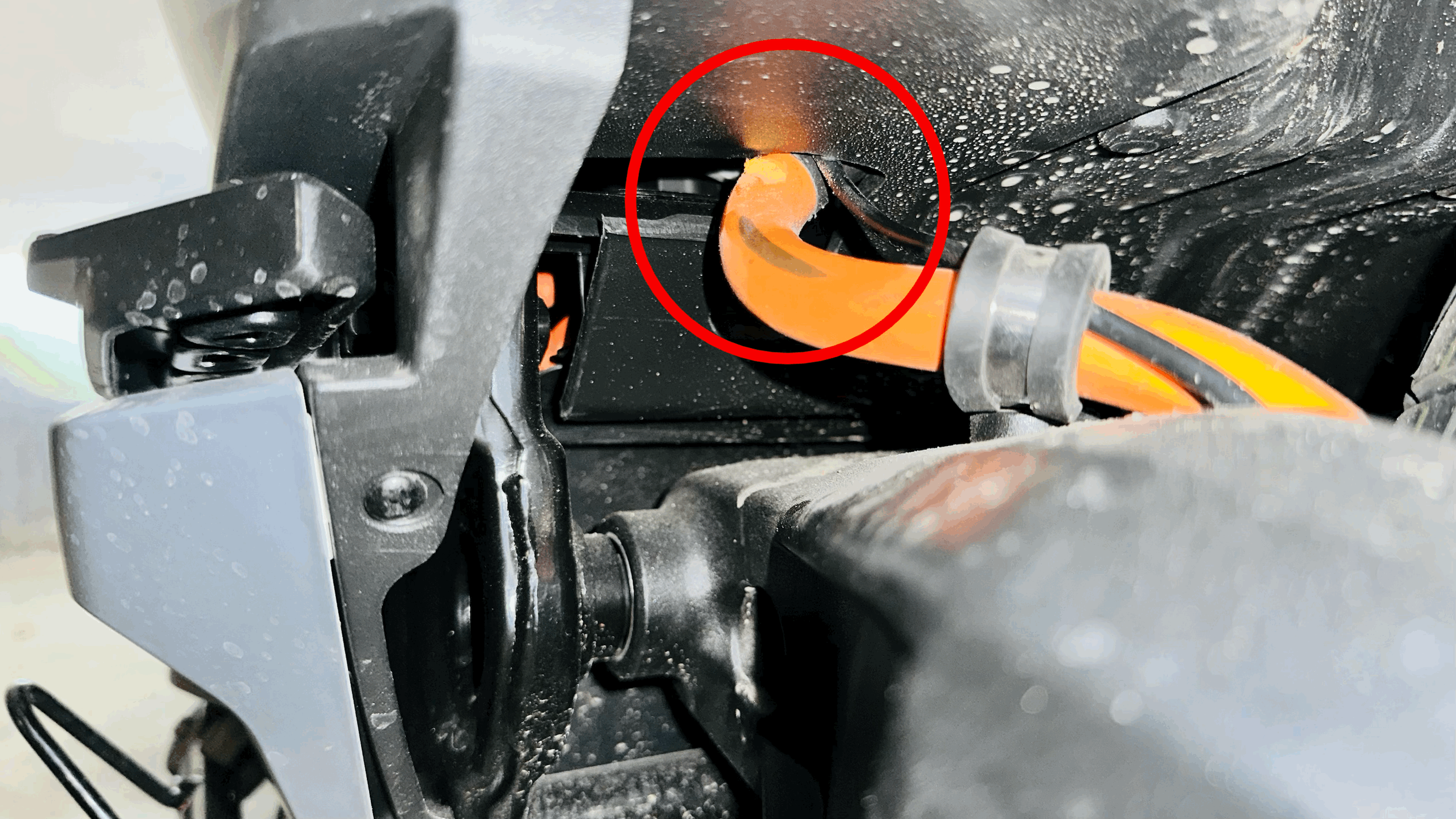 ich habe bei der Inspektion meiner NIU eine Beschädigung an der Hochvolt-Leitung festgestellt. Die befindet sich genau am Eingang ins Innere des Rollers (hinten links unten). Es ist bisher nur sehr oberflächlich und ich habe die Beschädigung erstmal mit Isolierband und Panzertape abgedeckt.