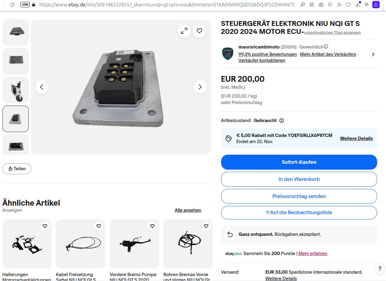 Ich bin mir jetzt nicht ganz sicher, aber das könnte doch eine gebrauchte für den N-GT sein? Die offizielle Bezeichnung des NIU N-GT lautet ja NQI-GT Pro:HotSummerNites.at hat geschrieben: So 9. Nov 2025, 15:48 Wo bekomme ich eine ECU her, zumindest ausborgen zum testen?
