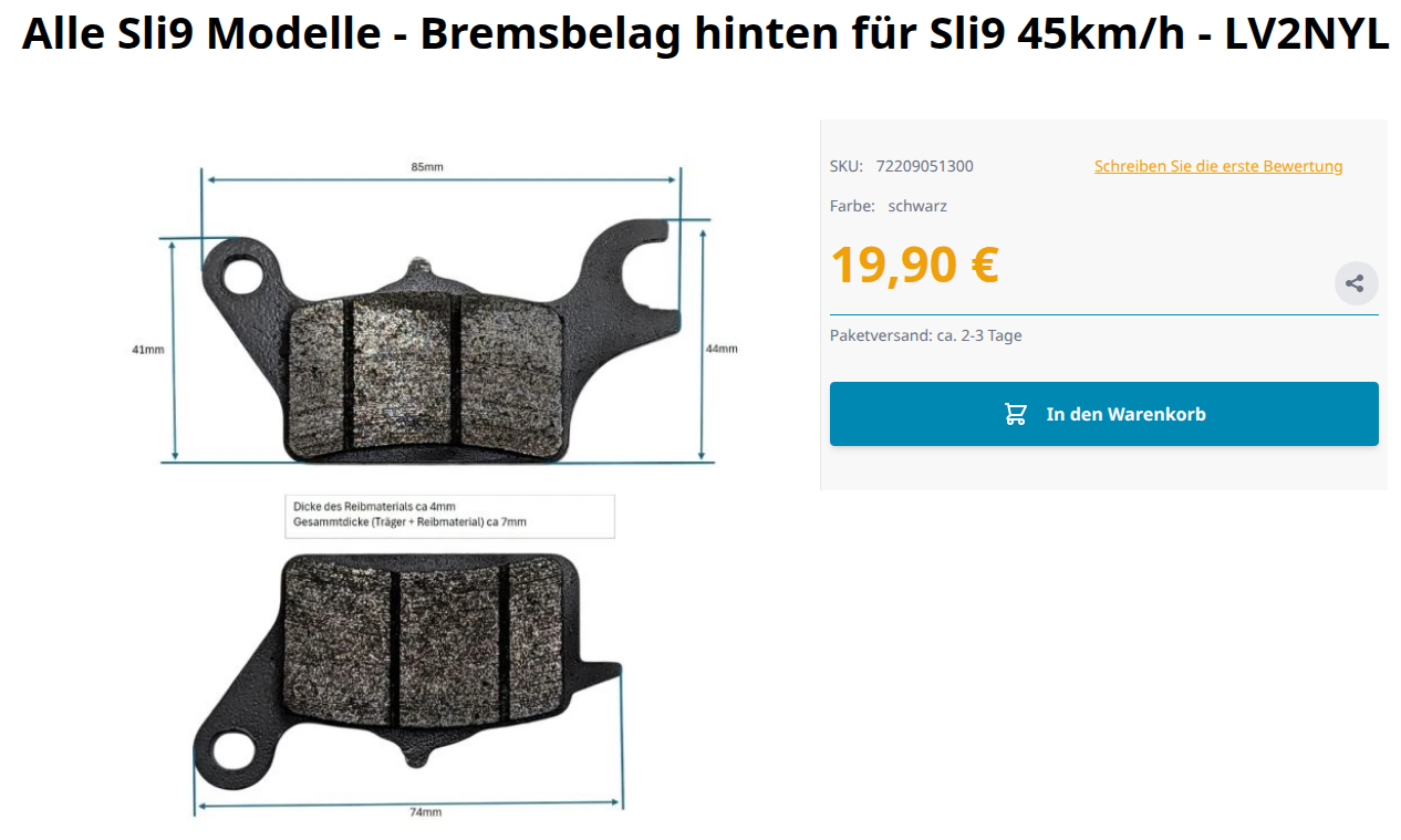 Ja da schau her ... heute erhalte ich eine Mail von NM, dass der Bremsbelag wieder lieferbar ist.