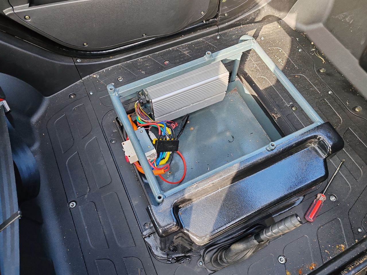 Wenn ich den Sitz drehe, erscheinen irgendwann die 4 Imbußschrauben, die in die angeschweißten "Hülsen" (auf dem Foto-ohne Sitz) gehören, um den kompletten Sitz zu fixieren !
