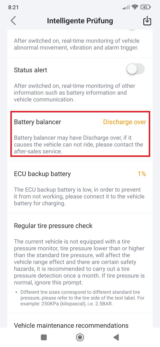 Wenn Du eine übersetzung des chenglischen willst, dann würde ich das etwa so interpretieren, daß es einen Fehler im BMS gibt, der dazu führen kann, daß das Fahrzeug nicht fahrbar wird. In welchem Fall Du den after-sales-service kontaktieren solltest.