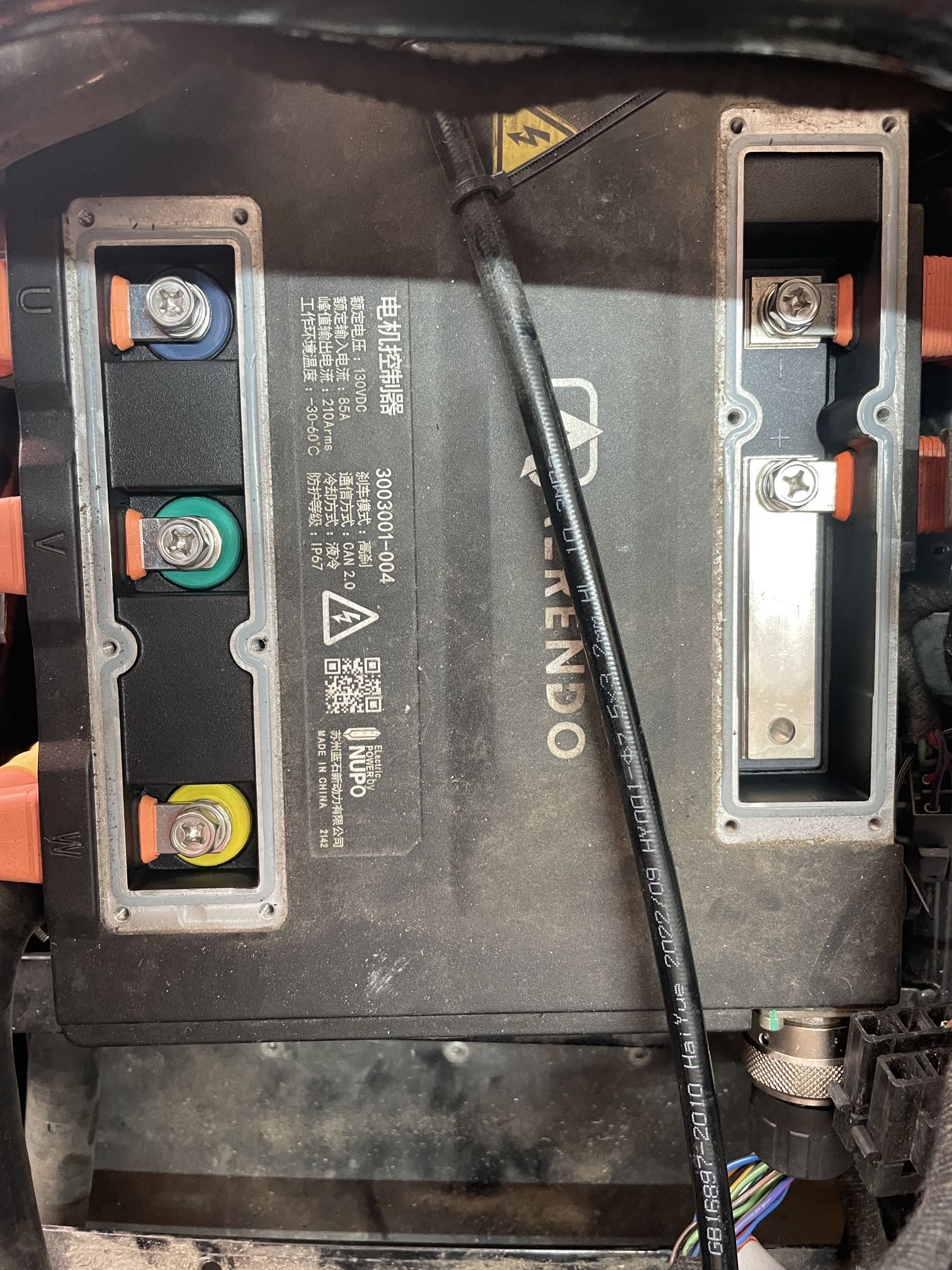 Der Converter . Rechts die Anschlüsse HV+ und HV - mit 135V gemessen.